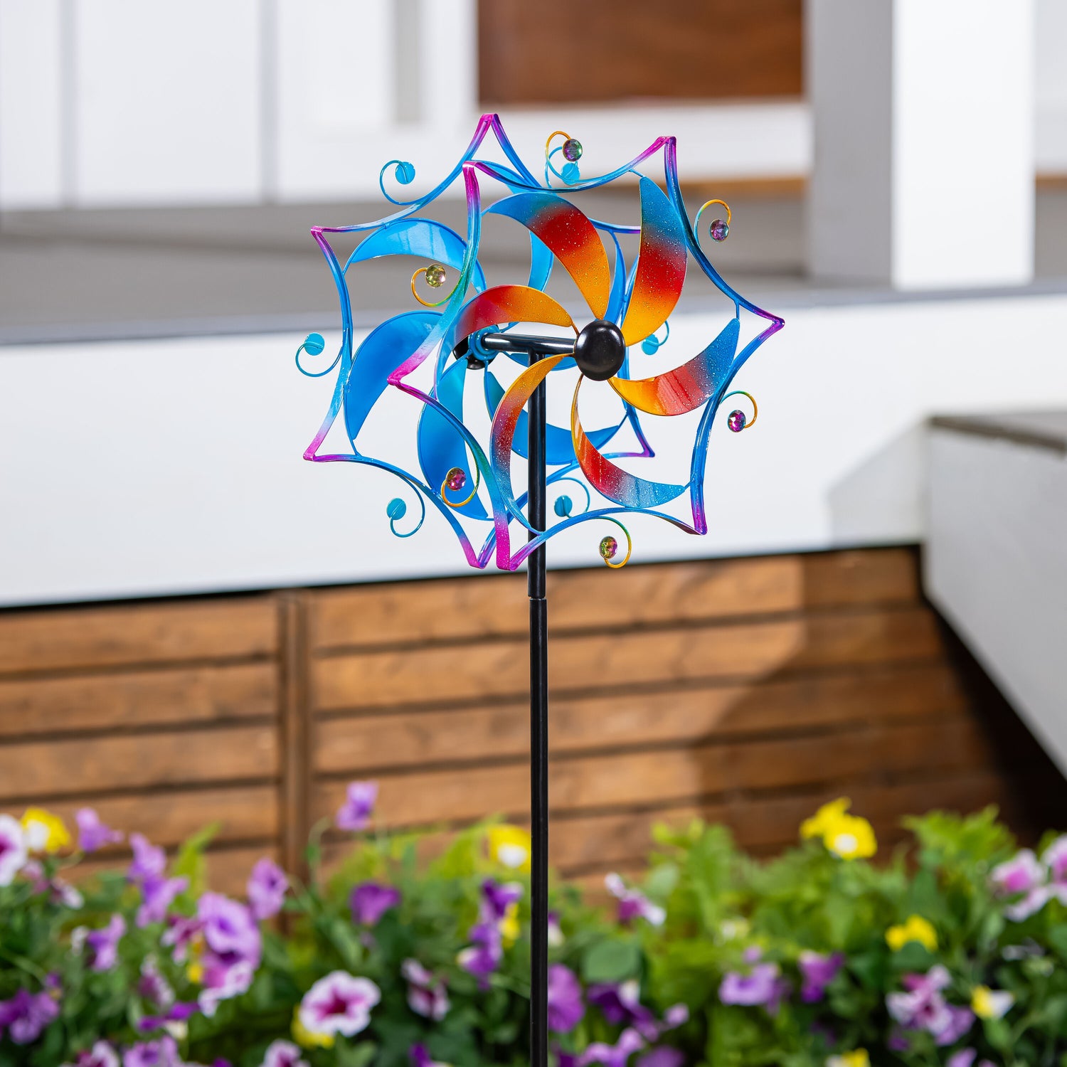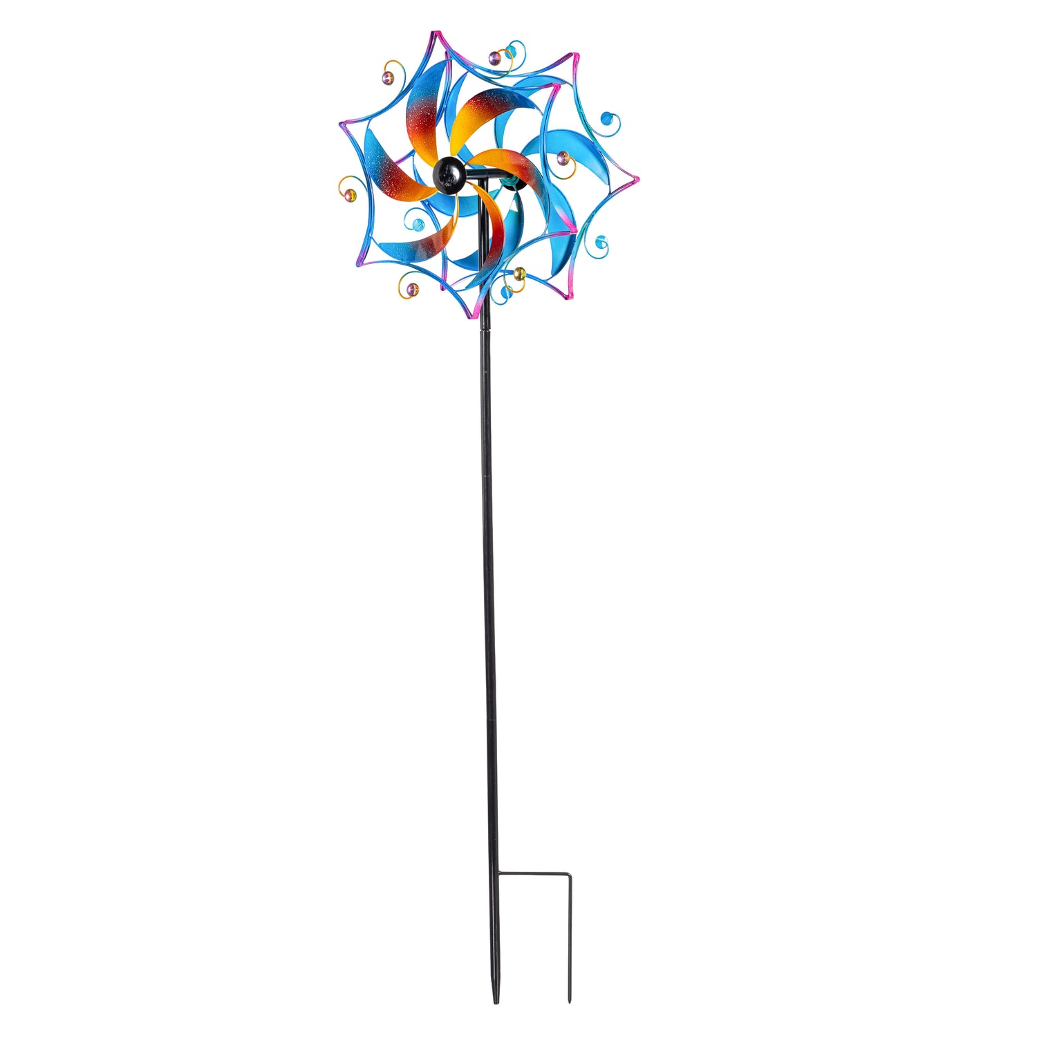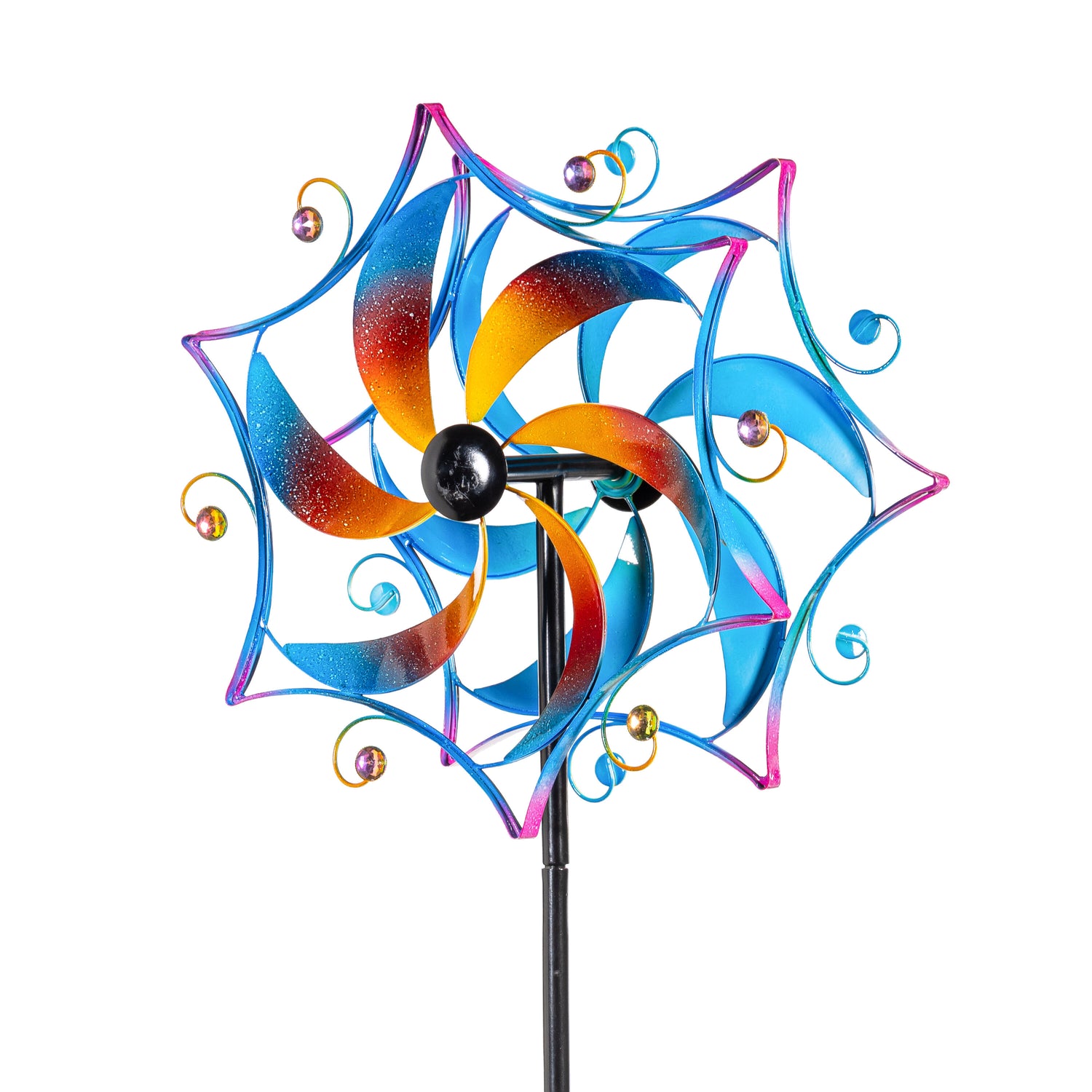 Create a mesmerizing display in any outdoor space, garden, or landscaping with this statement wind spinner. This spinner is designed to move when the wind blows; beautifully spinning in a way that will capture everyone's attention. Sit back after a long day and relax on the front porch while watching it come to life in the gentle breeze. Crafted from outdoor safe and weather-resistant materials, it's designed to endure the elements and last season after season.