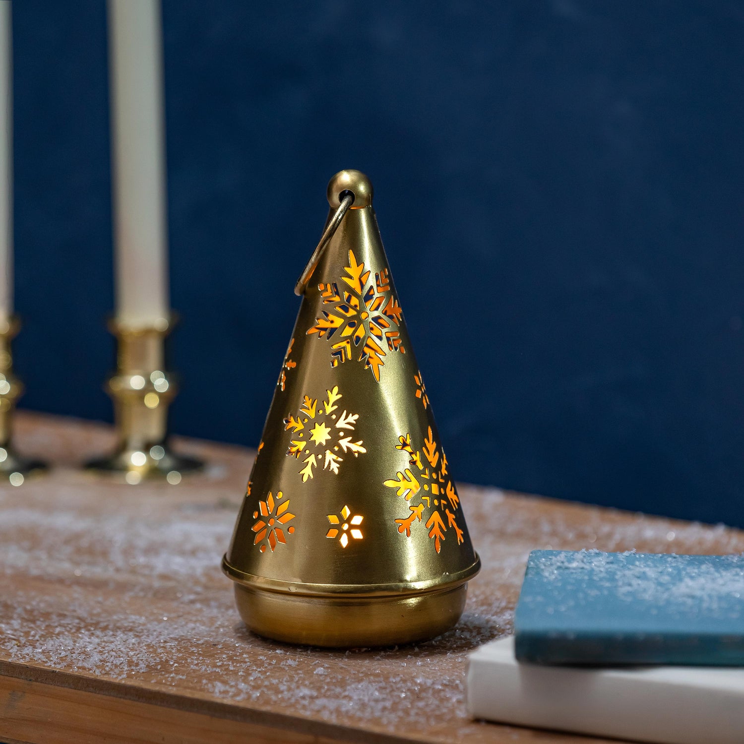 Season to Sparkle Candleholder Tree with Snowflake Cut Outs Metal Tealight Candle Holder, 7.5"H