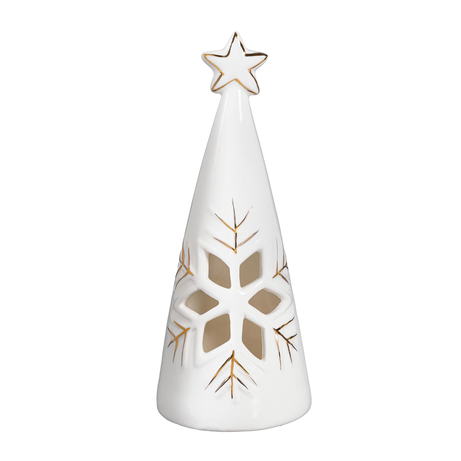 Season to Sparkle LED Table Decor Ceramic Christmas Tree with Snowflake Cut Out, Set of 2