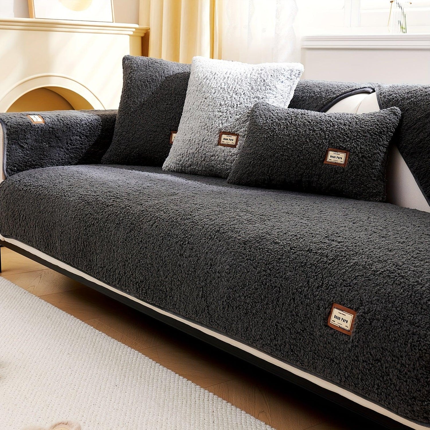 Durable 3 cushion couch cover | High-Quality Plush Sherpa Sofa Cover
