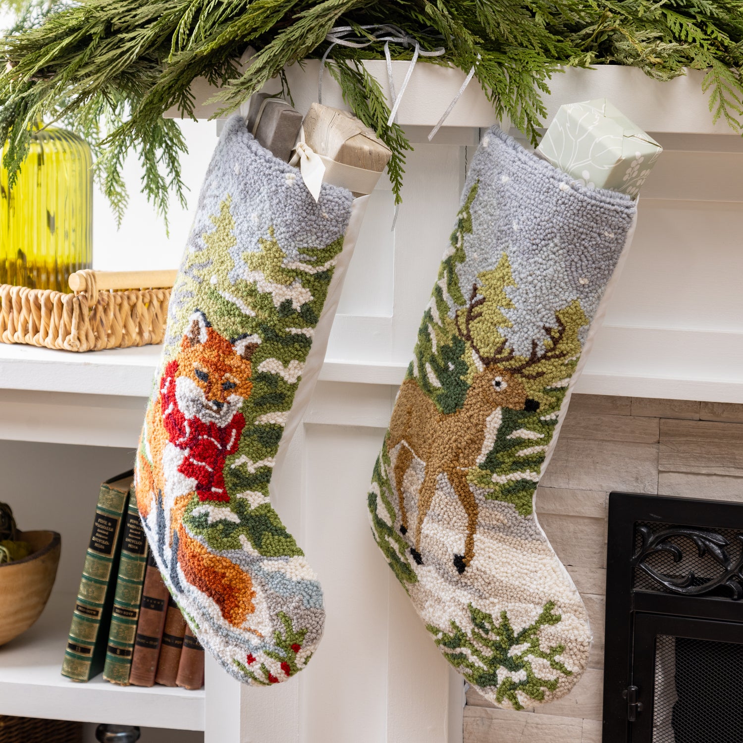Perfect for cabin-style homes or nature lovers, this stocking adds warmth, tradition, and woodland elegance to your mantel. A generous size provides plenty of room for stuffing with holiday surprises.
