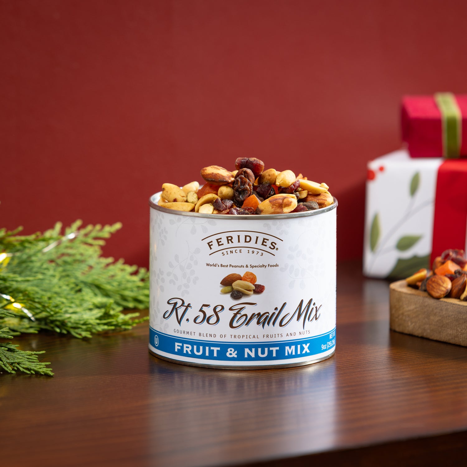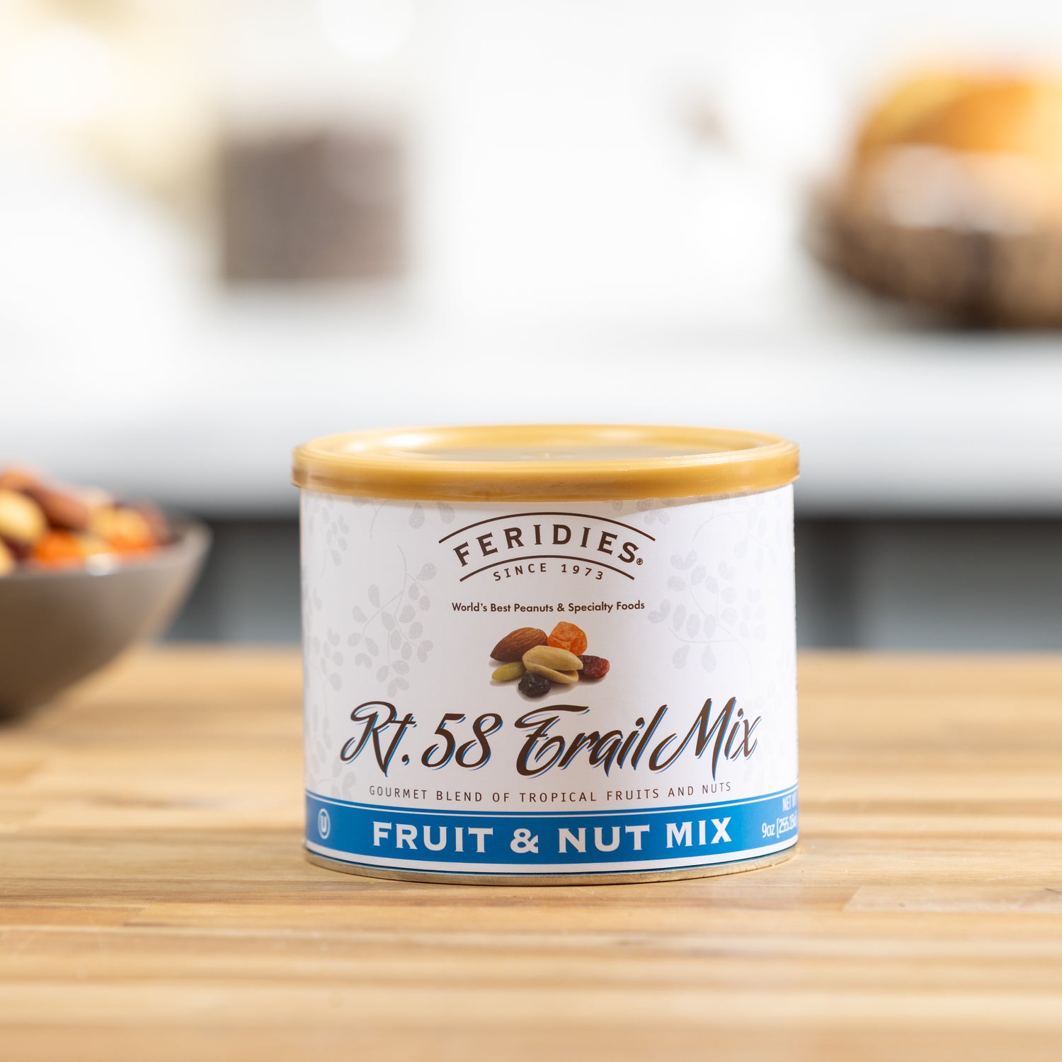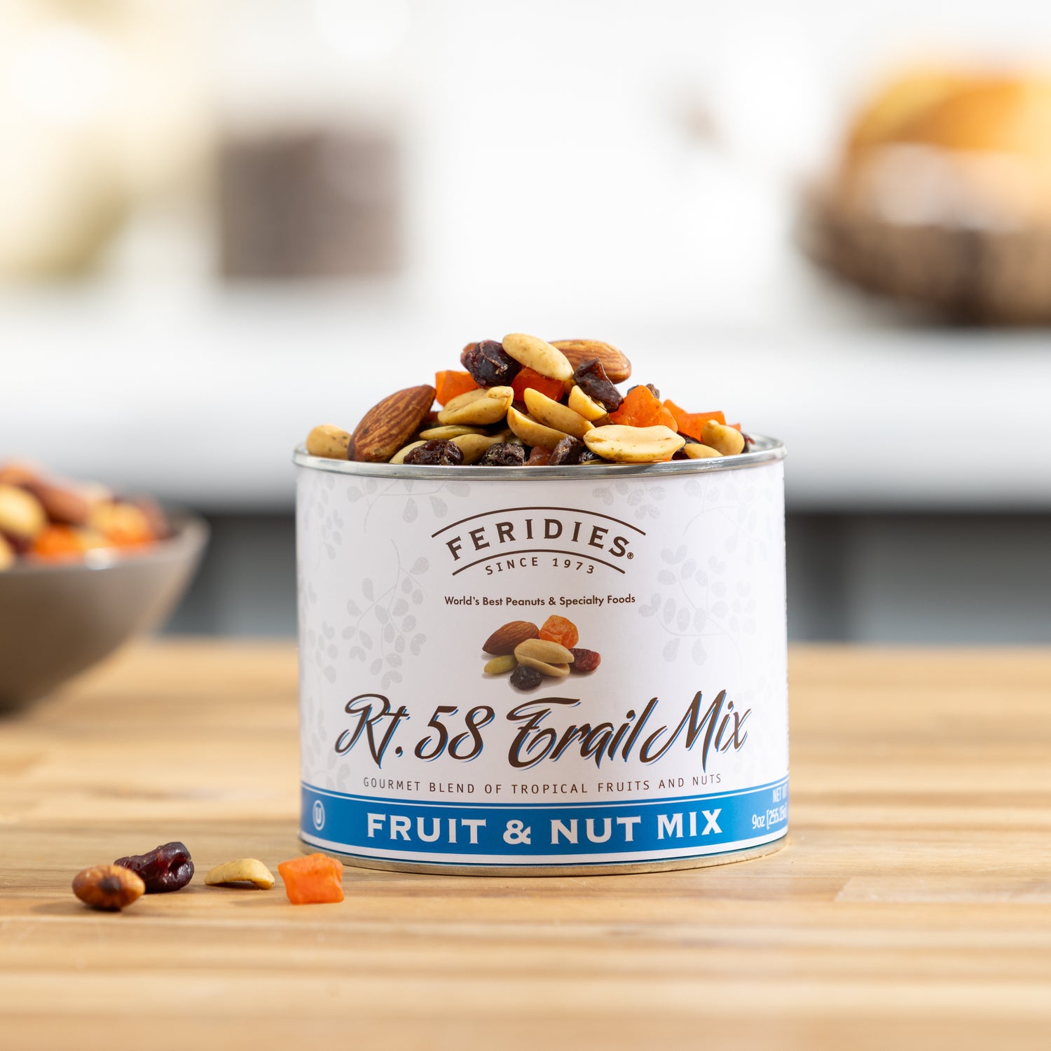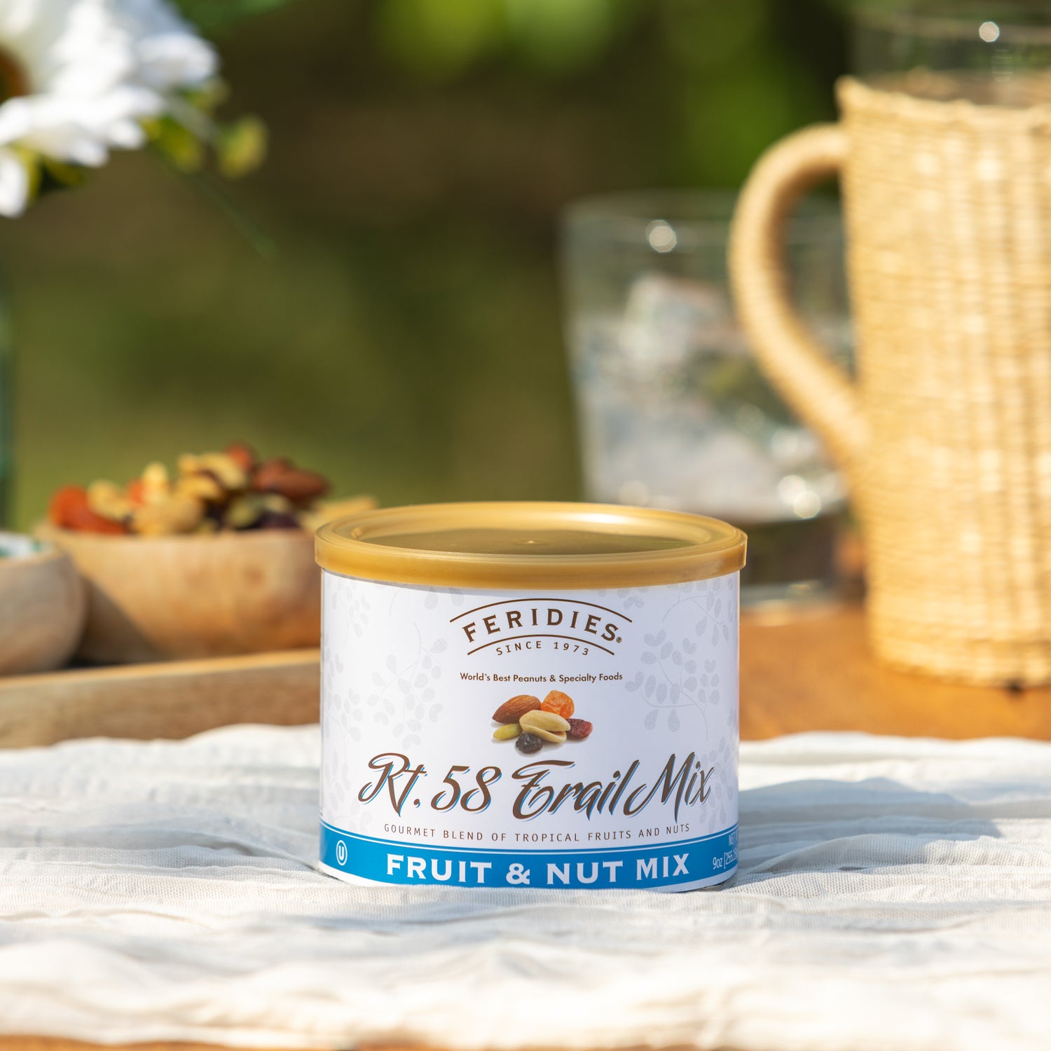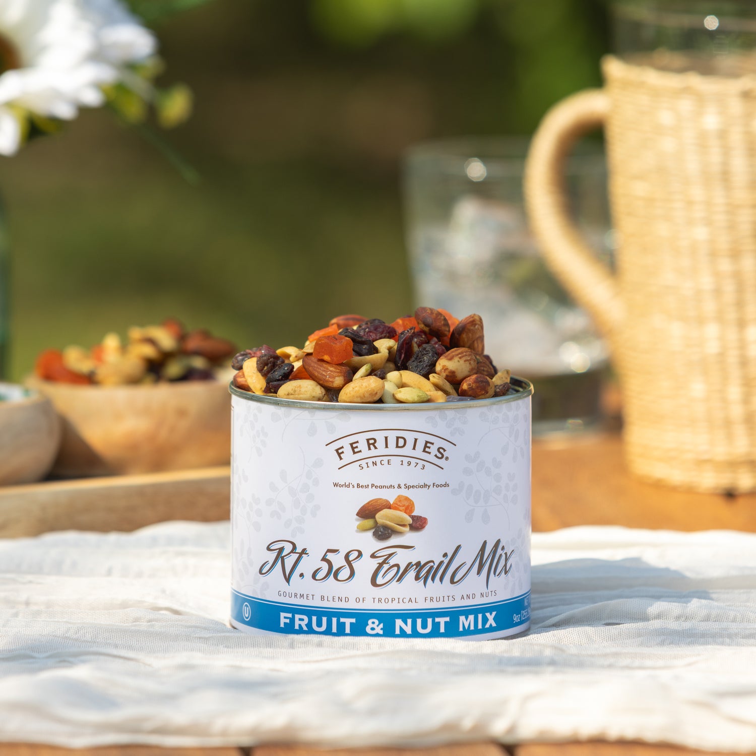 Fuel your day the delicious way with Feridies Rt. 58 Trail Mix – a perfectly balanced fruit & nut mix that’s as wholesome as it is craveable. Inspired by the scenic Route 58 that winds through the heart of Virginia, this gourmet blend is packed with premium peanuts, almonds, and tropical fruits like papaya and raisins for a naturally sweet and salty combo.