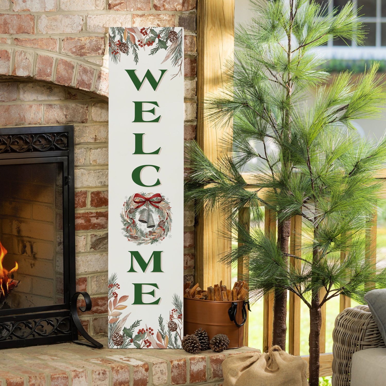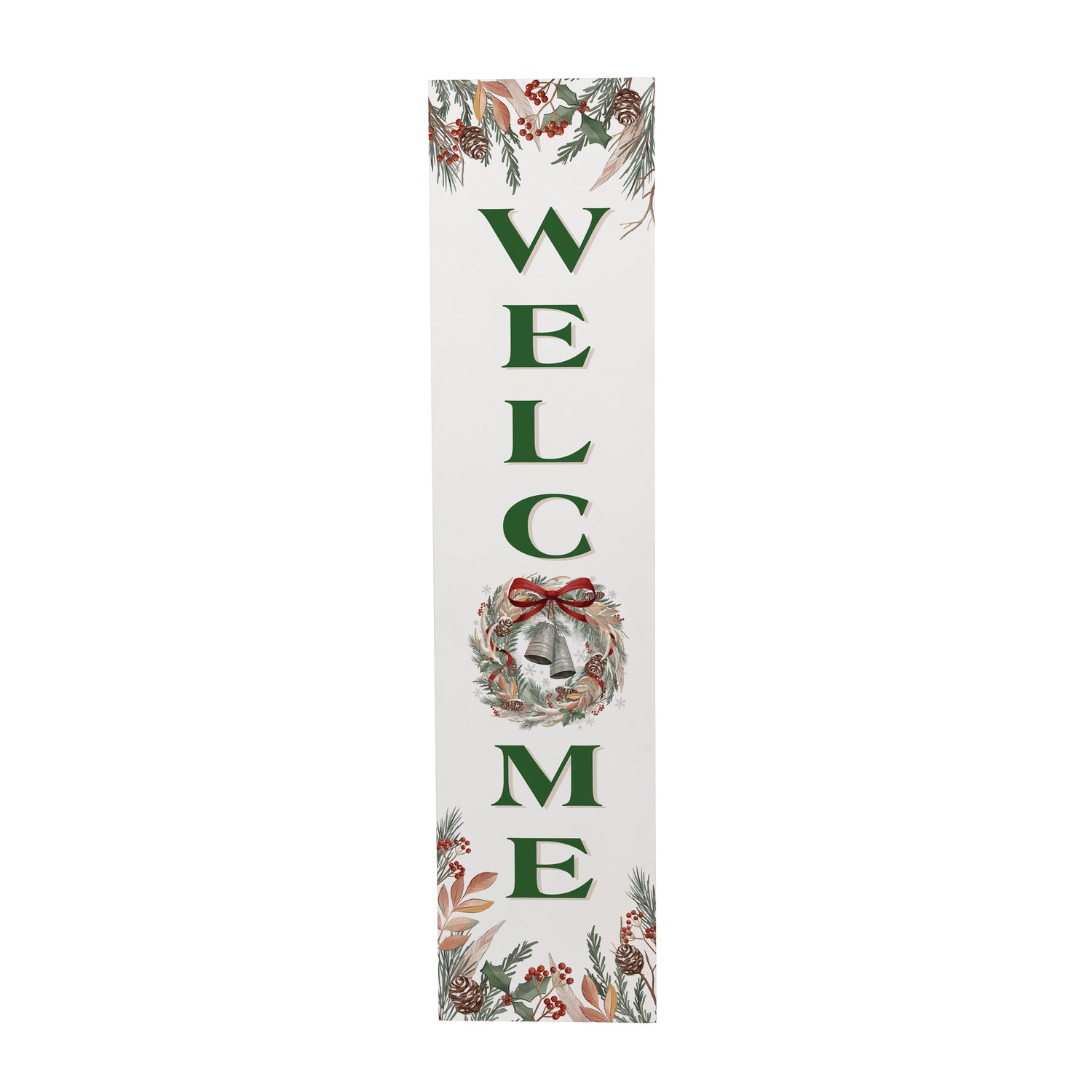 Enhance the home’s entrance with our beautifully designed "Welcome" porch leaner. Featuring elegant holiday motifs and vibrant green lettering, this charming decor piece is perfect for creating a warm and inviting atmosphere. Crafted from high-quality materials, it promises durability and style, making it suitable for covered outdoor use. Ideal for festive gatherings or everyday charm, this leaner is a delightful addition to seasonal decor. Welcome guests with grace and elegance this holiday season.