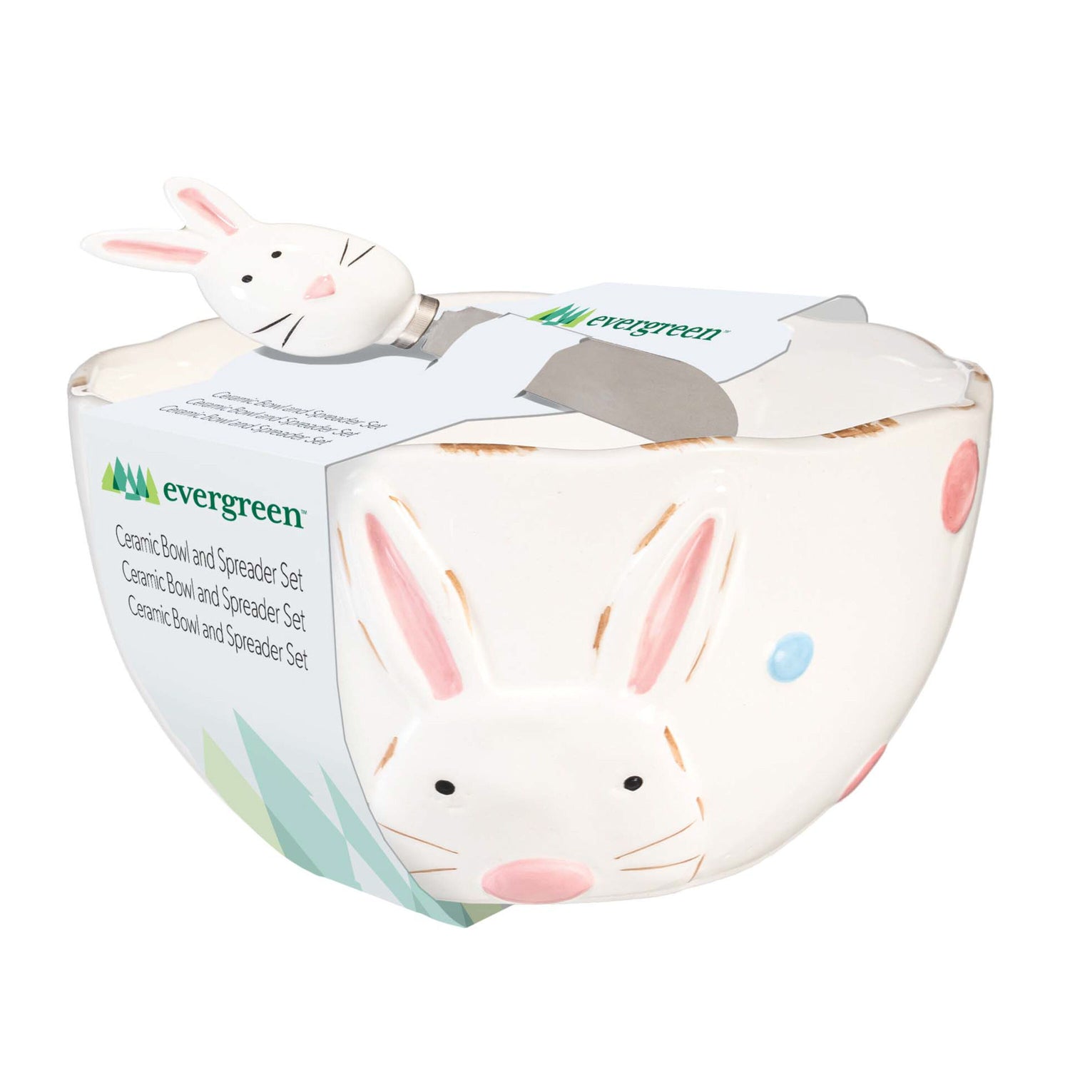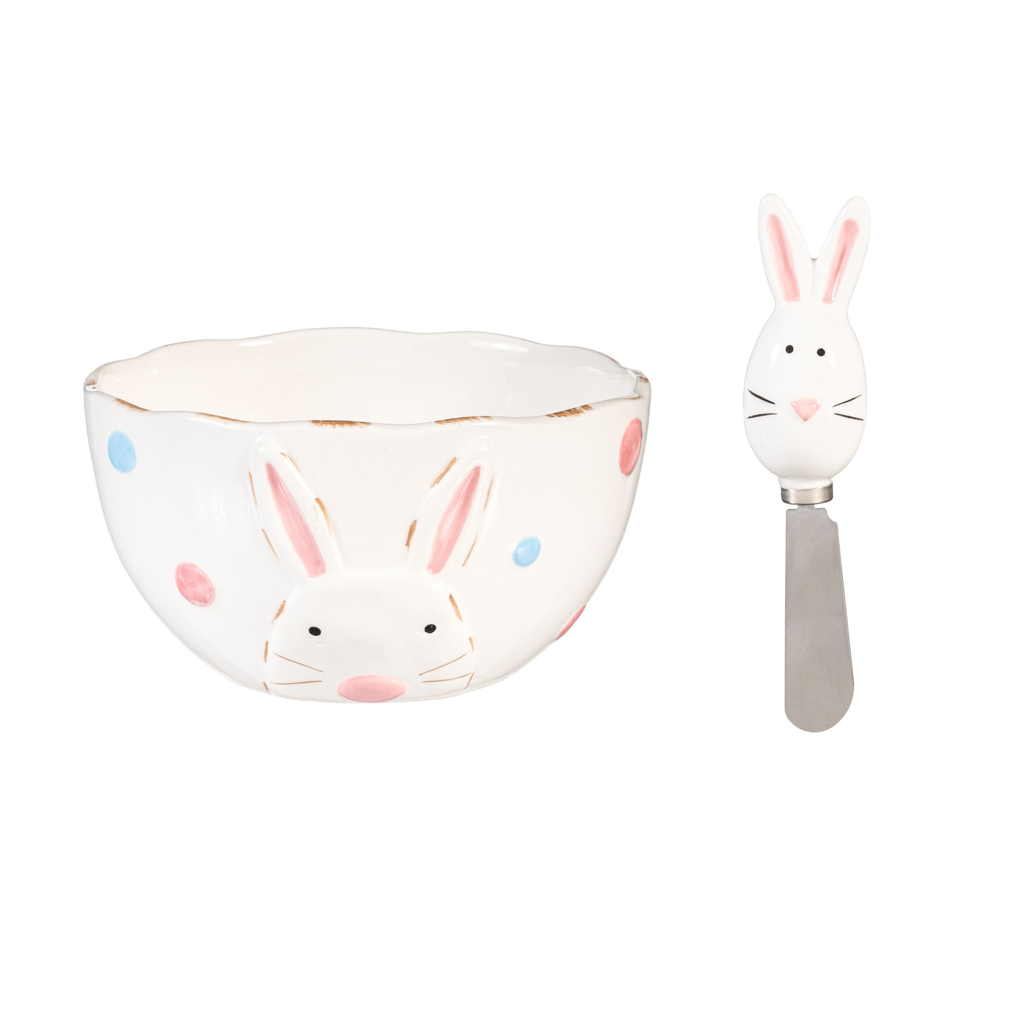 Bunny Blooms Serveware Ceramic Bunny Bowl and Spreader, Set of 2