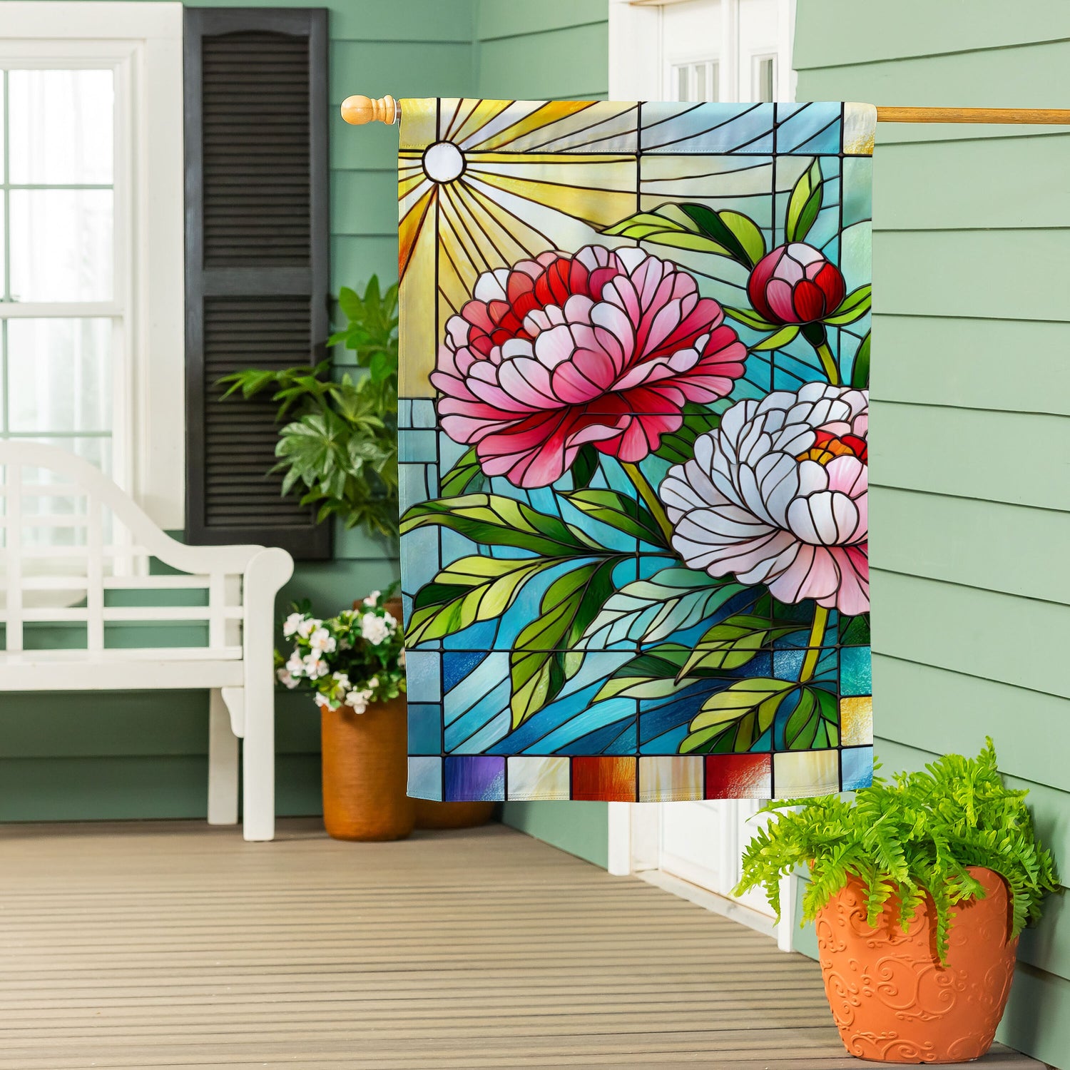 Floral Stained Glass Suede House Flag