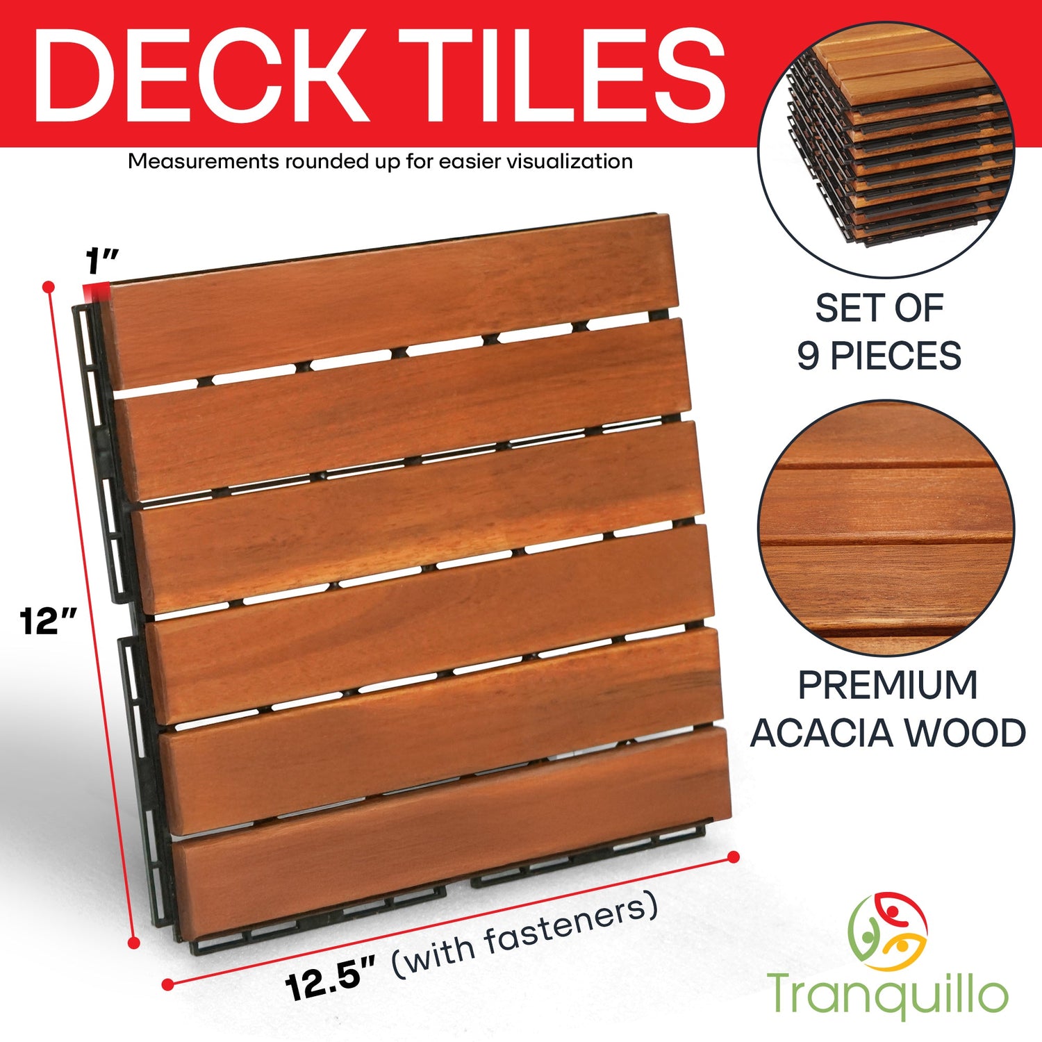 Transform your outdoor space with ease using the Tranquillo Acacia Wood Interlocking Deck Tiles.