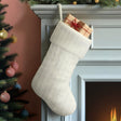 Introducing our White Plush Cableknit Stocking, a perfect blend of tradition and elegance within the Silver and Gold Collection. This 24-inch stocking is crafted from ultra-soft white plush fabric, featuring a classic cableknit design that evokes a sense of timeless winter charm. Its luxurious texture and serene white hue make it an ideal piece to complement the understated sophistication of the Silver and Gold collection, adding a touch of warmth to your holiday dècor.