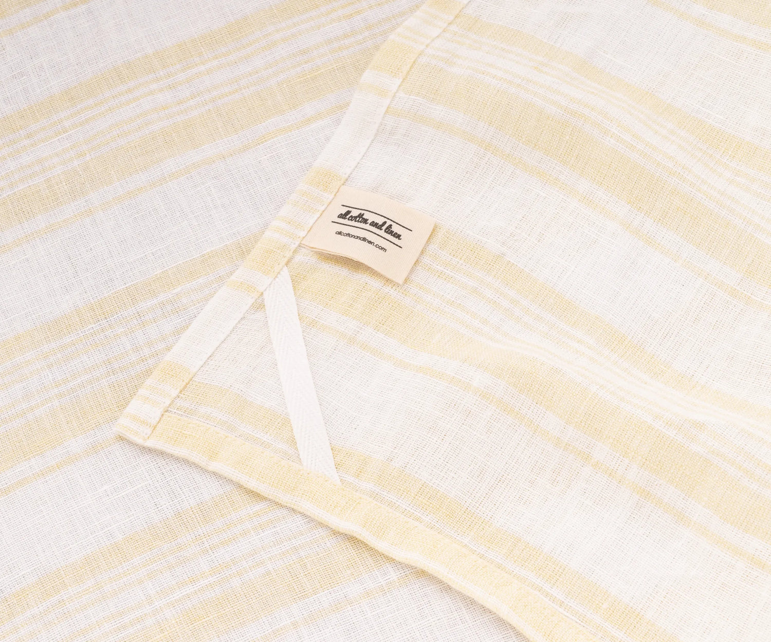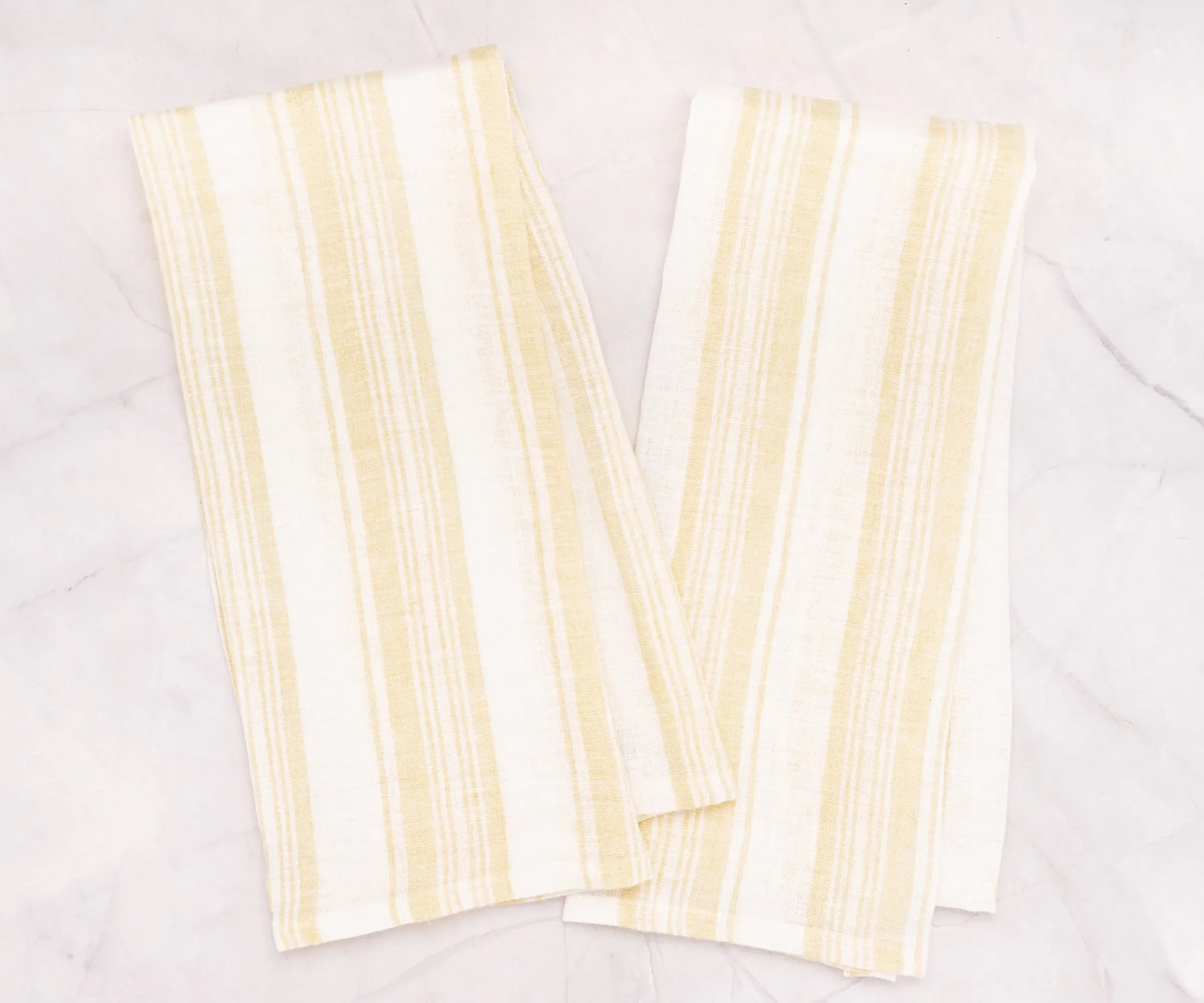 • Add a fresh pop of color to your kitchen with this set of yellow striped linen towels. Woven from 100% linen, they’re soft to the touch, naturally absorbent, and quick to dry—making them a go-to for daily use.