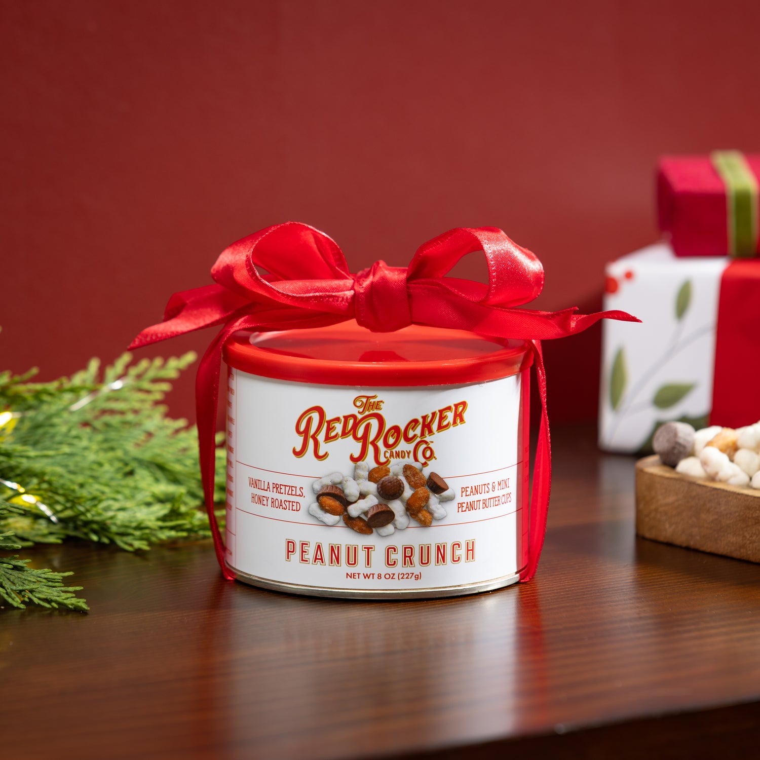 Get ready to rock your snack game with the bold and satisfying flavor of Red Rocker’s Peanut Crunch! This crave-worthy mix is a dynamic blend of sweet vanilla pretzels, honey-roasted peanuts, mini peanut butter cups, and roasted peanuts — all packed into one irresistible bite.