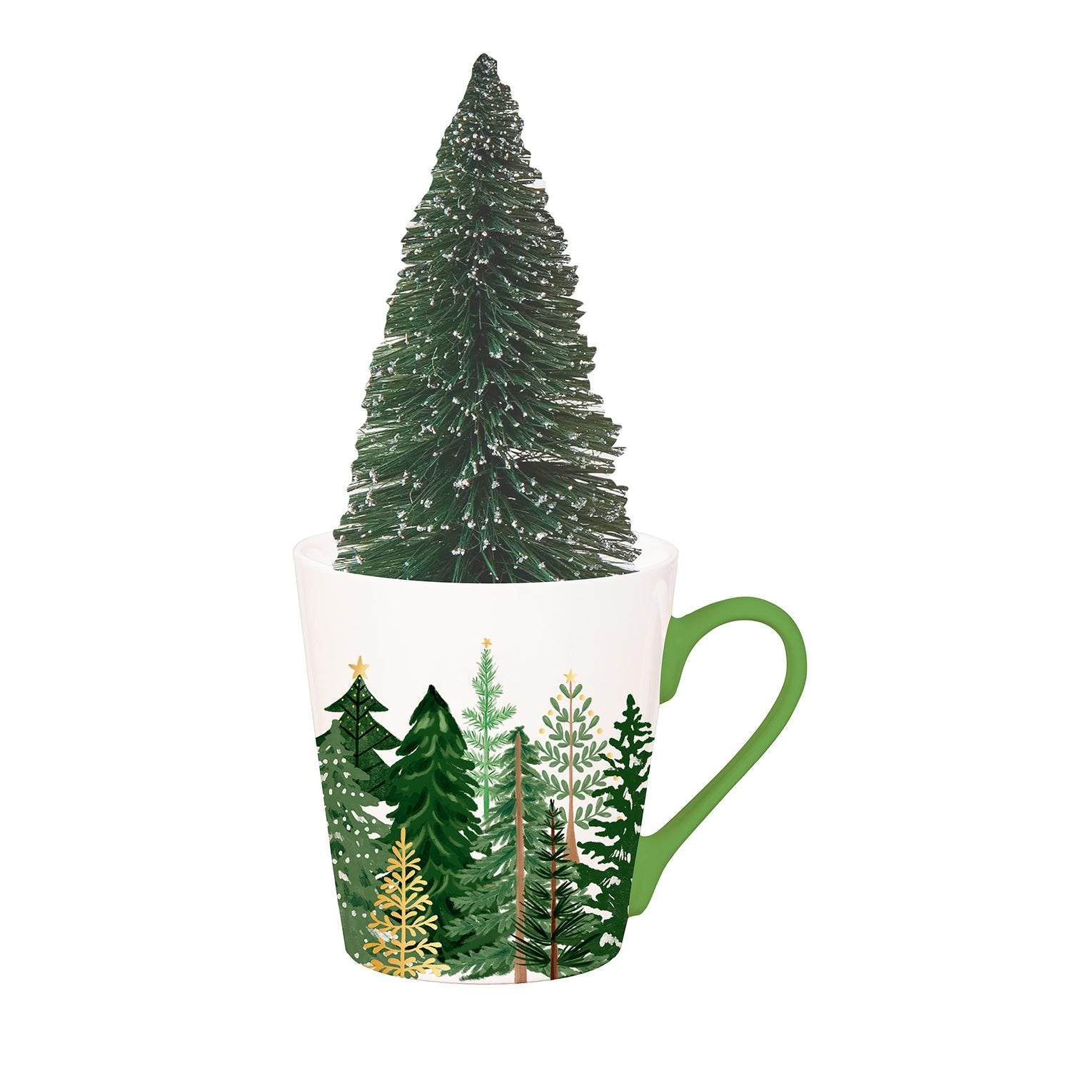 Shades of Green Drinkware Gift Set Ceramic Flare Cup and Bottle Brush Tree, 12oz, Gift Box