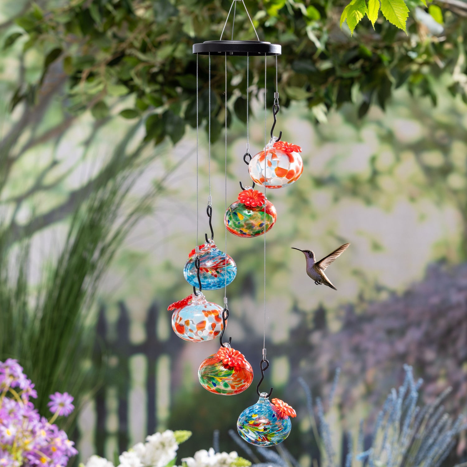 Pollinator Garden Bird Feeder, Art Glass Hanging Hummingbird Feeder, Dark Blue