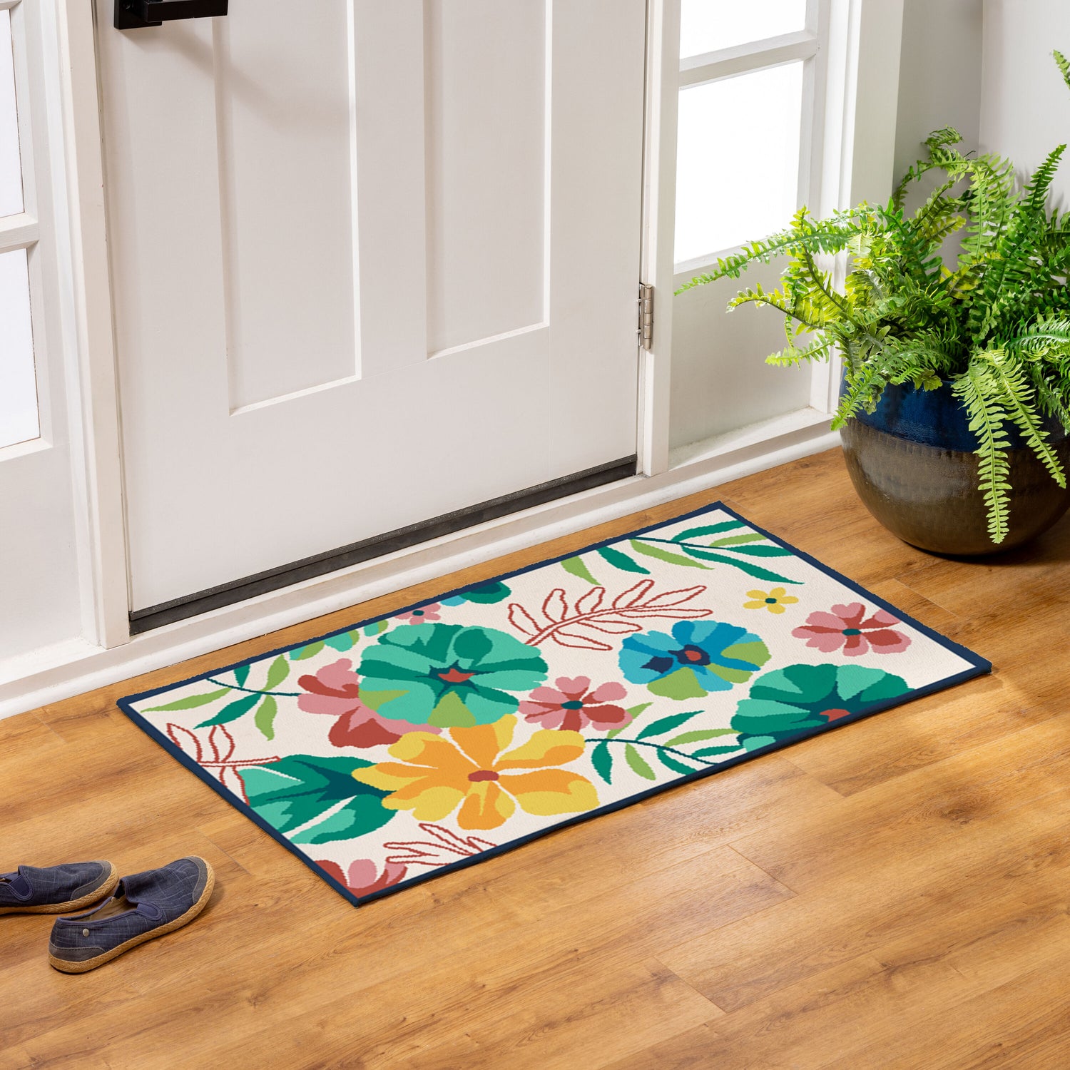 Vibrant Flowers Indoor/Outdoor Hooked Rug 24"x42"