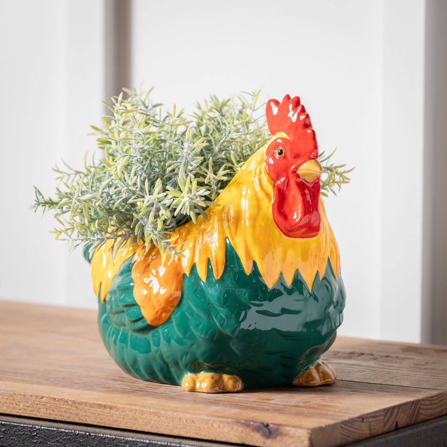 Petal & Plow Planter, Ceramic, Colorful Rooster, 8.3"