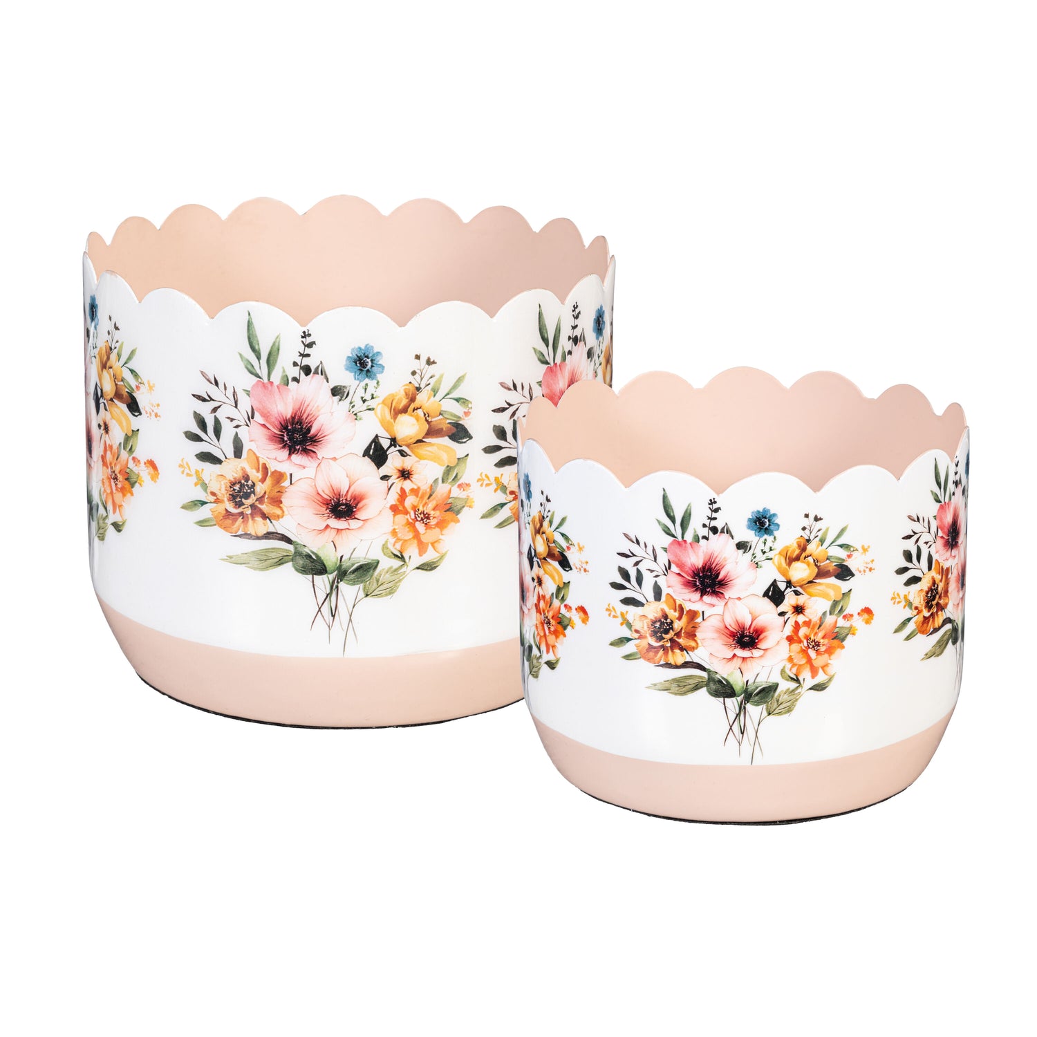 Petal & Plow Planter, Metal Floral Scalloped Planter, Nested Set of 2