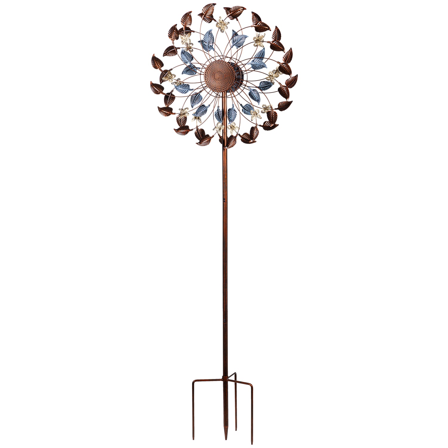 Create a mesmerizing display in any outdoor space, garden, or landscaping with this statement wind spinner. This spinner is designed to move when the wind blows; beautifully spinning in a way that will capture everyone's attention. Sit back after a long day and relax on the front porch while watching it come to life in the gentle breeze. Crafted from outdoor safe and weather-resistant materials, it's designed to endure the elements and last season after season.