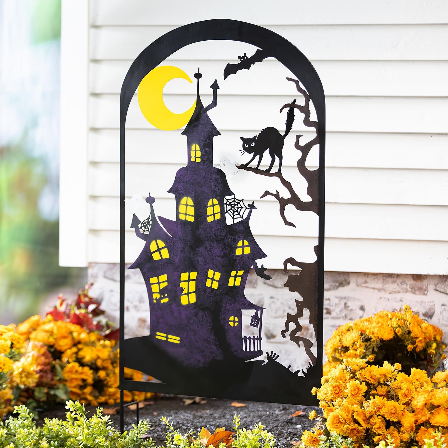 • Metal Halloween trellises are easy to display for the season; just stake into the ground