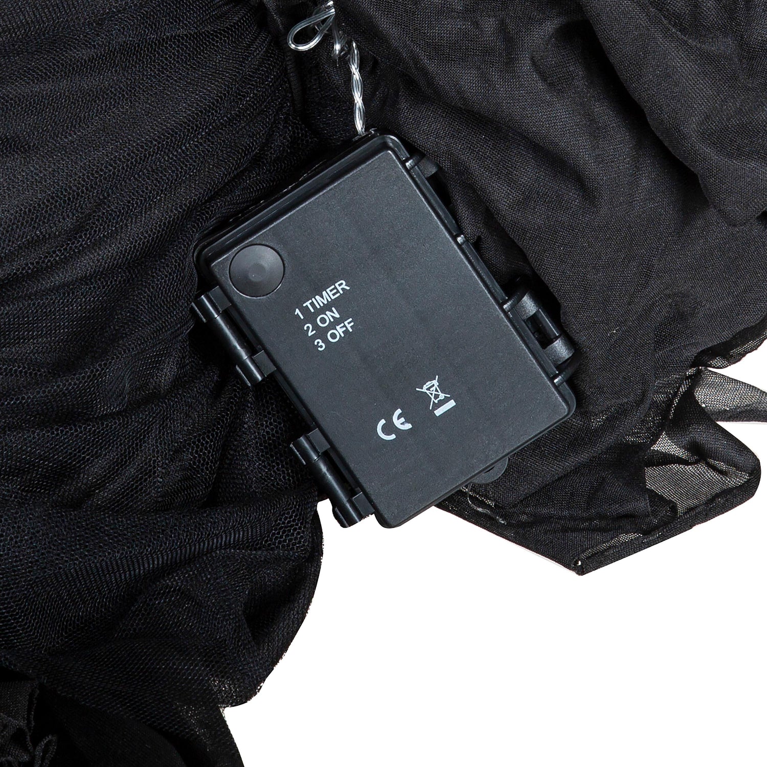 Lightweight and sturdy plastic frames with flowing black polyester fabric. Battery-operated; each witch uses 3x AA batteries, not included. Imported.