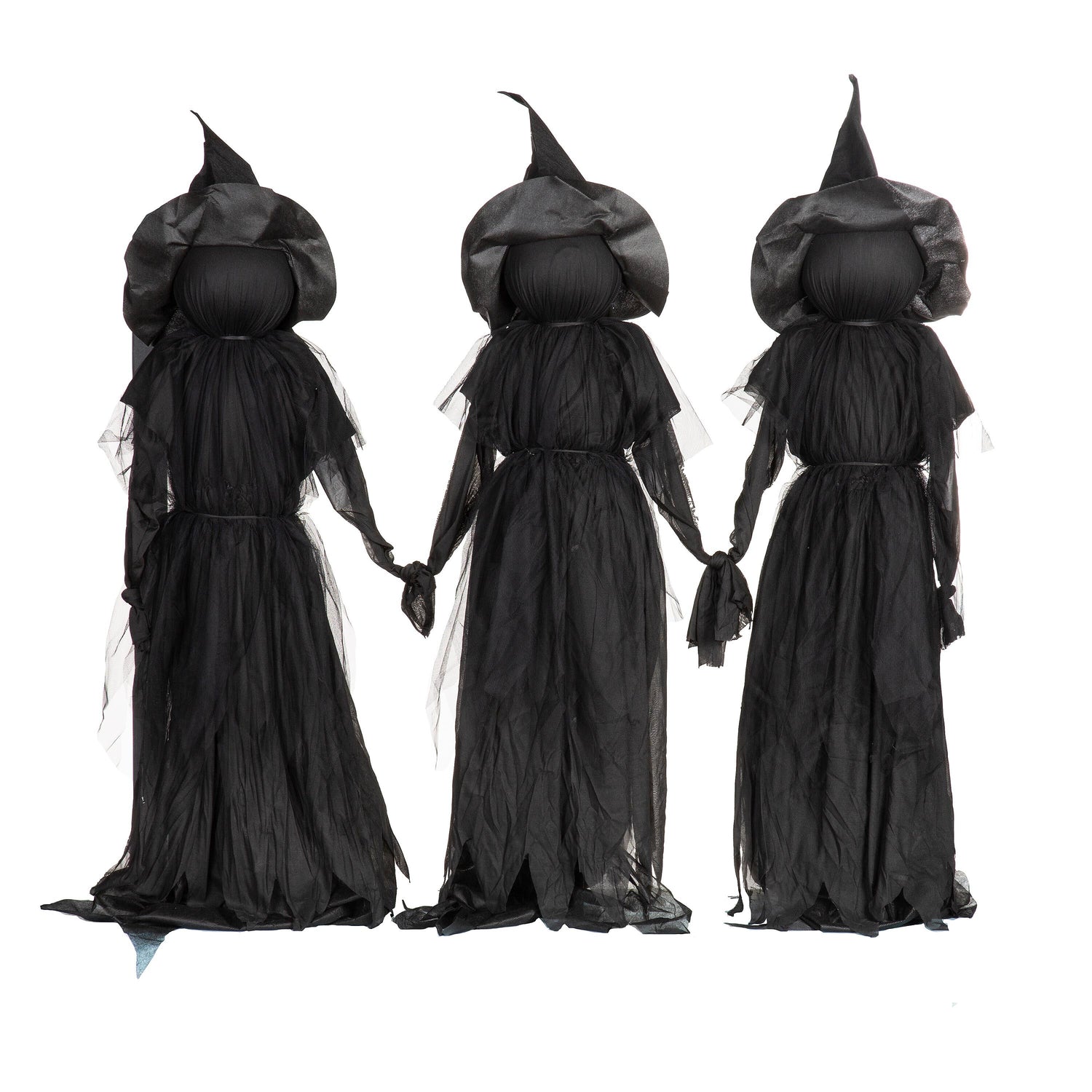 This triplet of witches hold hands in an eerie exhibit of sinister sisterhood. You'll love the specter they create in your front yard - and their included ground stakes make them so easy to display.