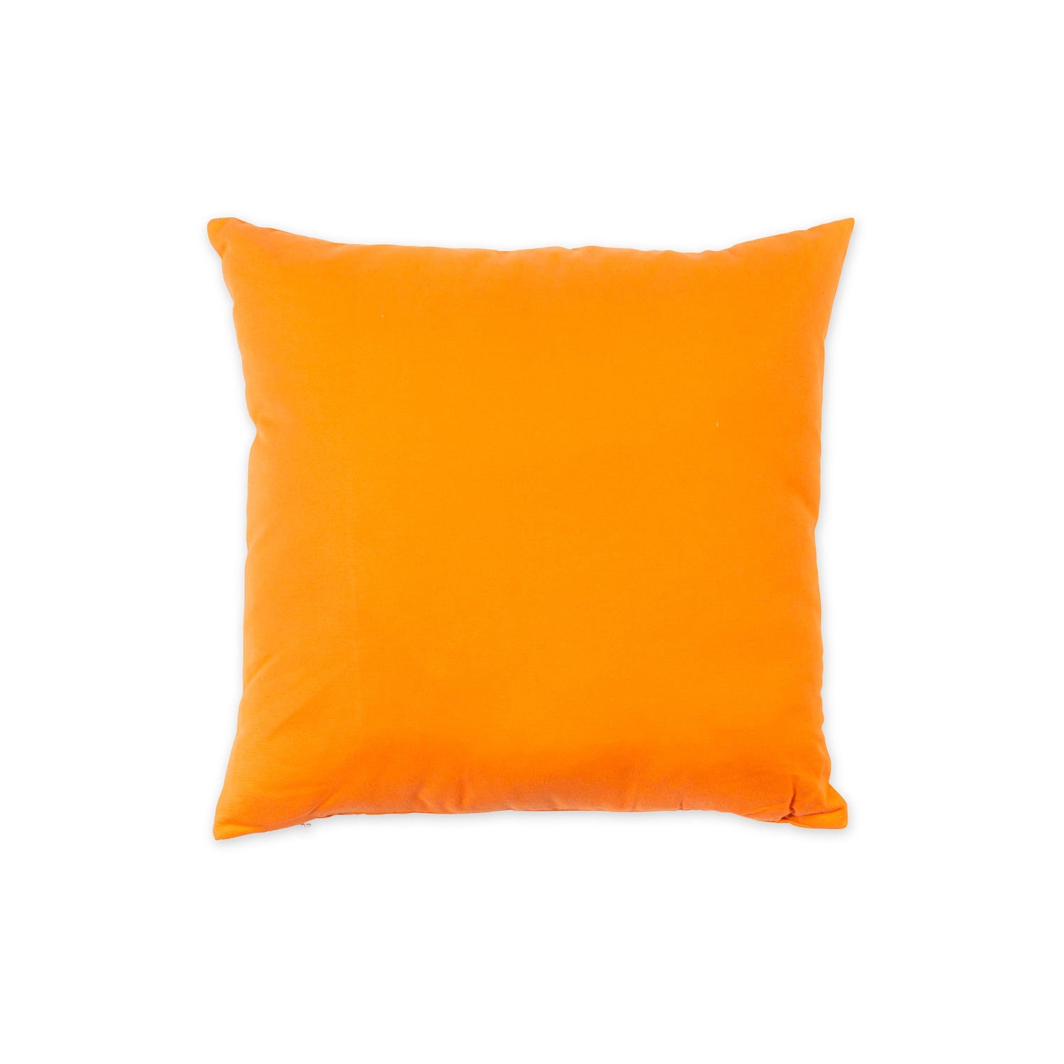 - Halloween pillow features black letters embroidered against a bright orange background