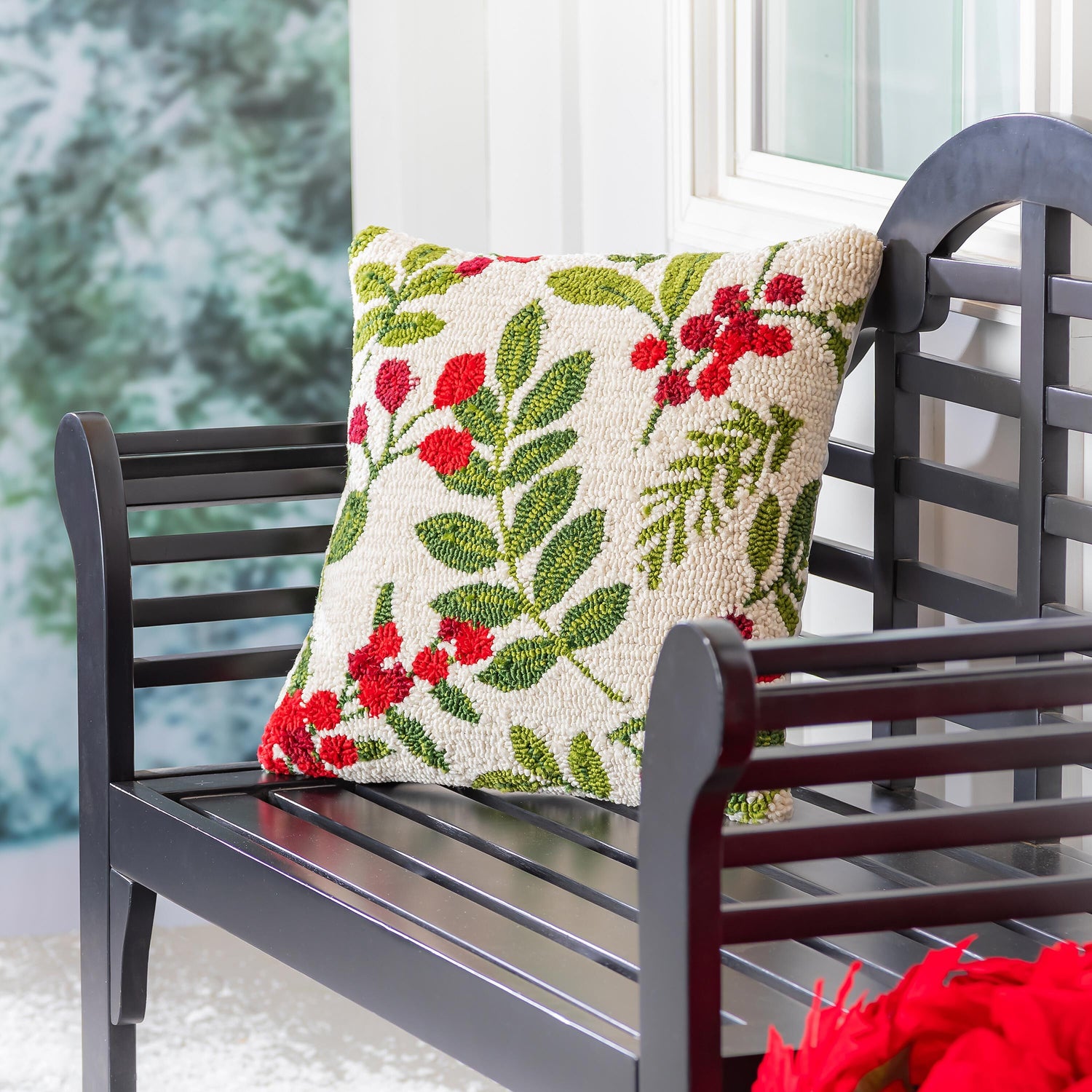VivaStyle Hooked Pillow 18" X 18", Festive Foliage