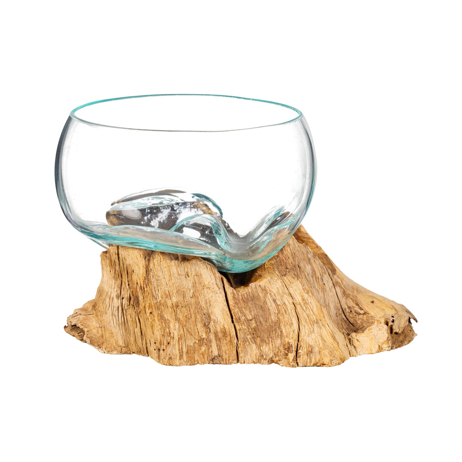 Welcome nature and art into your home with our Small Recycled Glass Planter with Driftwood Base.