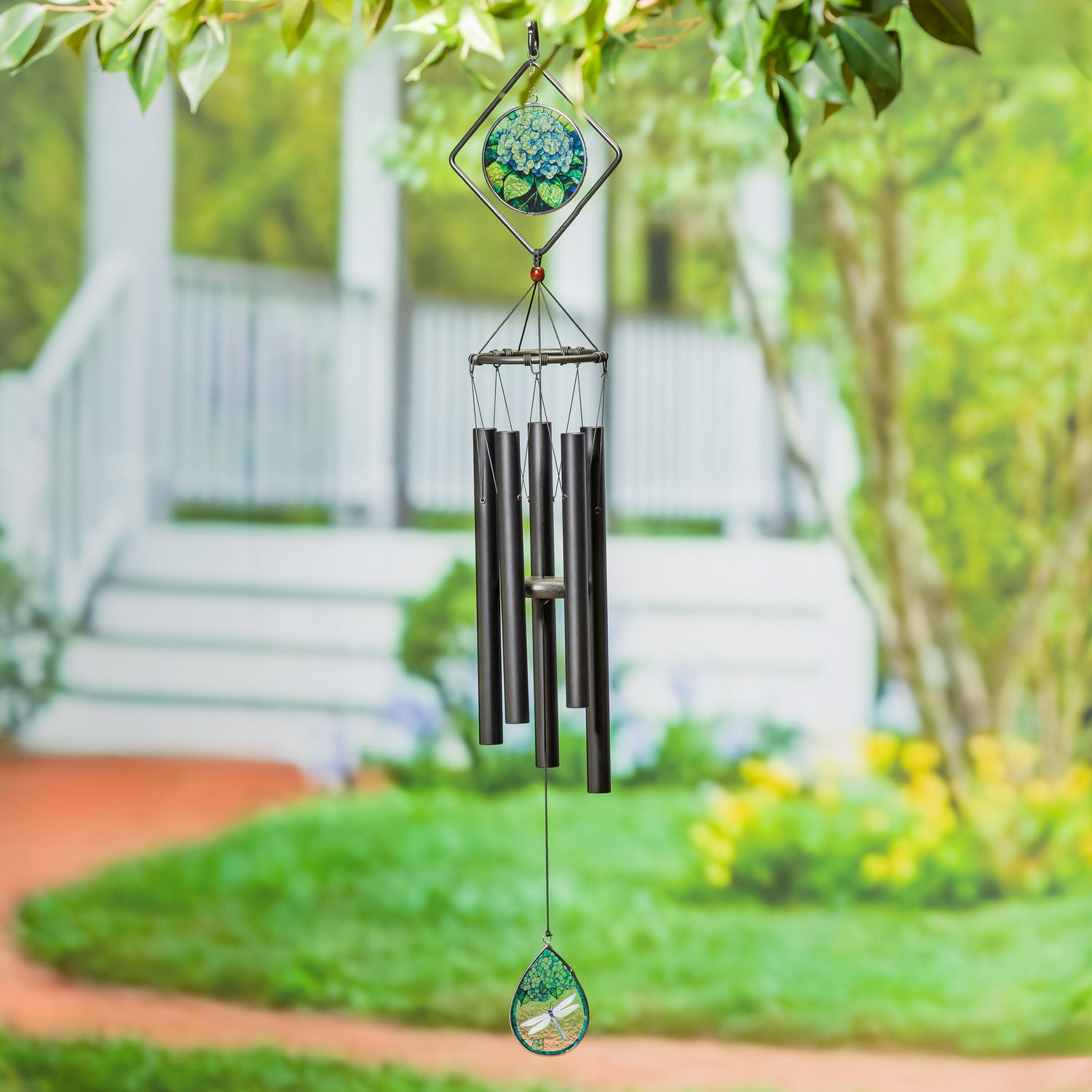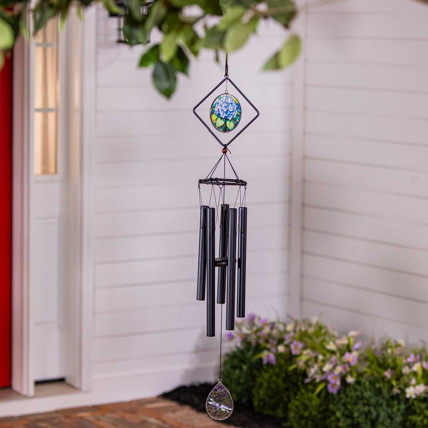 Avria Stained Glass Hand-Tuned Wind Chime, Hydrangeas, 36"