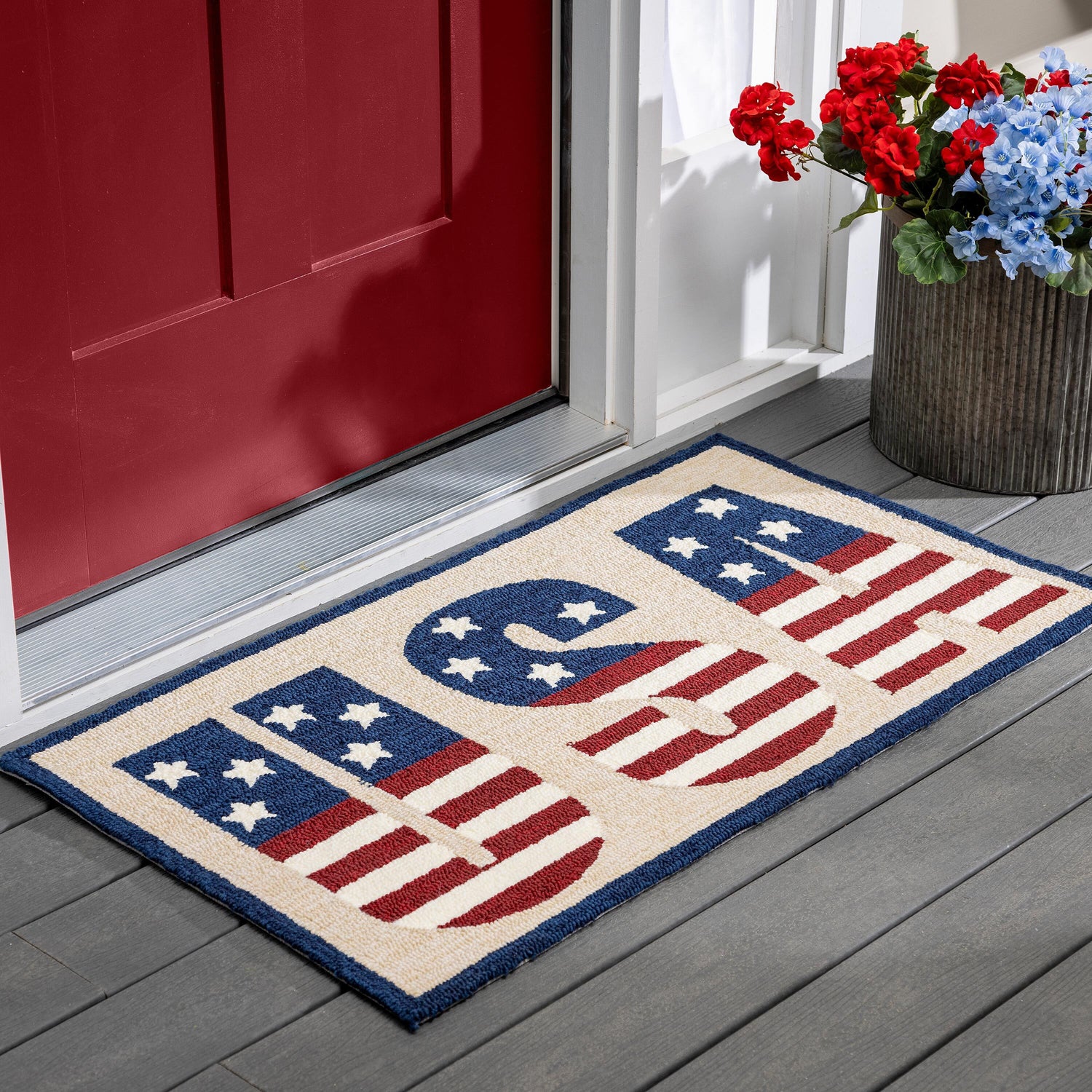 Add cool, soothing blues to any space with our Indoor/Outdoor Hooked Polypropylene Rug. This plush rug features a colorful patriotic design. Perfect for a the porch or adding a peaceful look to your décor. Crafted of all-weather polypropylene, this accent rug is mildew and fade resistant, safe to be used indoors or out. Add it to your patio, porch or even by your sink for an instant refresh.