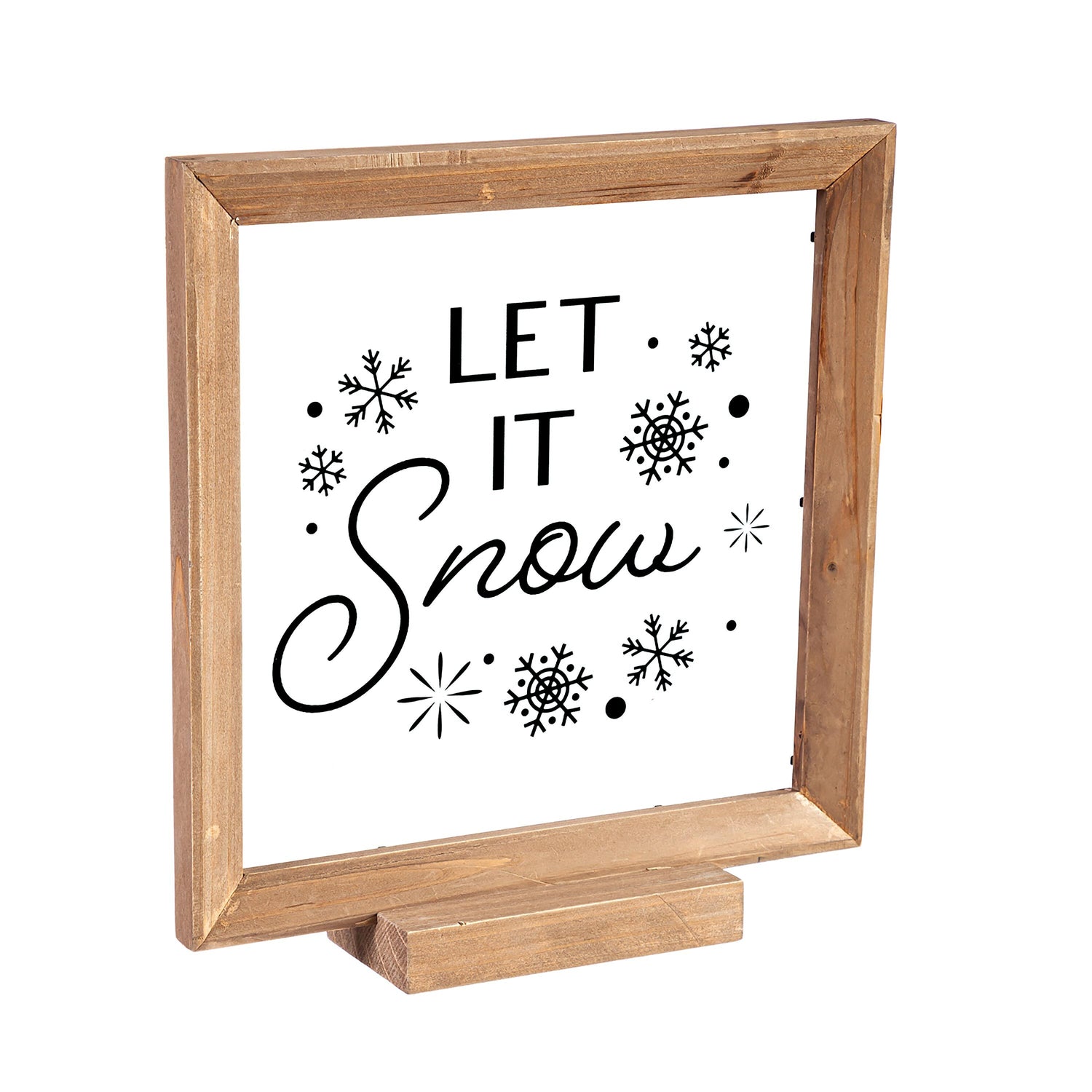 Share sweet holiday sentiments throughout your home with this set of three wood-framed décor. Three designs come in different sizes with heartwarming messages for guests to enjoy. This decor reads "Season's Greetings", "Peace on Earth", and Let it Snow" inside white and brown wood frames. Crafted from wood and plastic, these accenting pieces will last for seasons to come. These decorative pieces can be showcased on a tabletop or mantel.