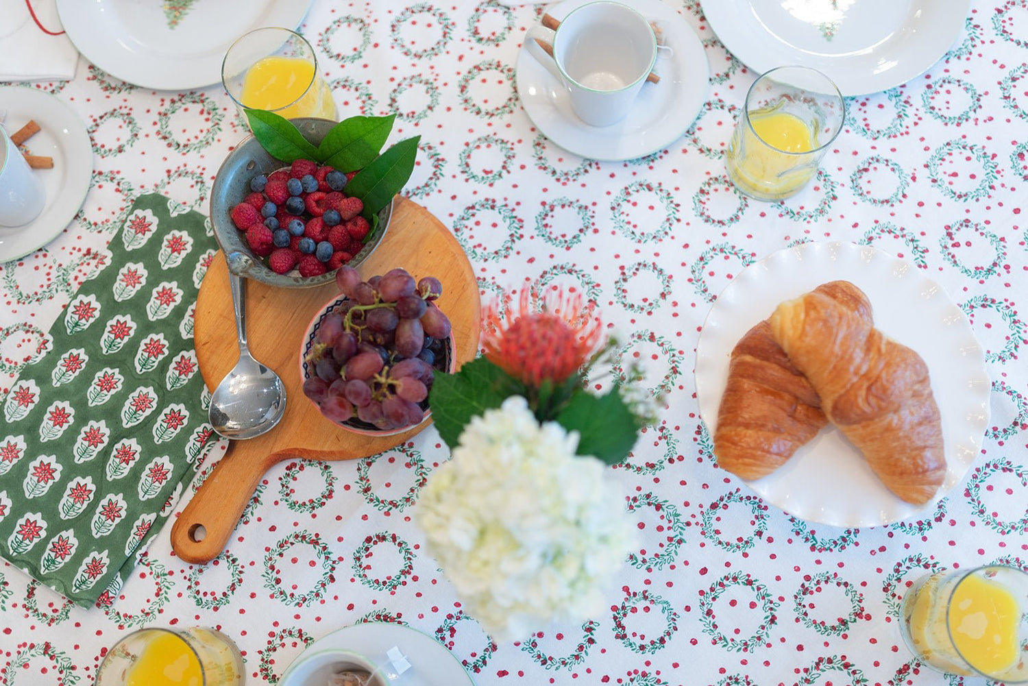 Add to your holiday or special occasion table with these hand block printed tablecloths! Our tablecloths are 100% cotton and we believe they set the tone for a beautiful meal with family and friends.  Mix and match with any of our Mended napkins to create a unique and inviting tablescape.