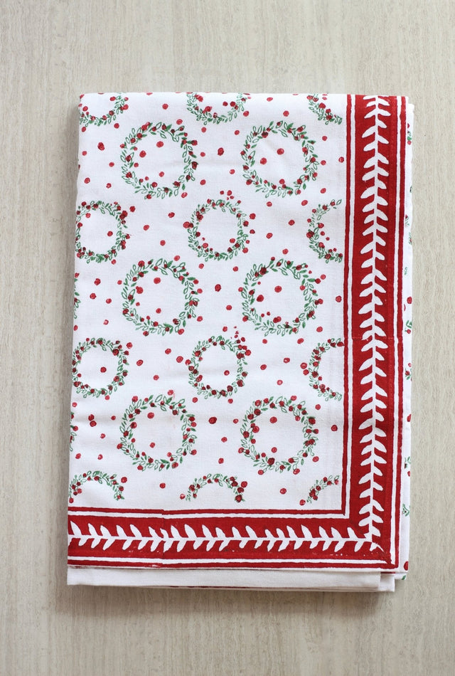 Tablecloth - Wreath, Evergreen & Red