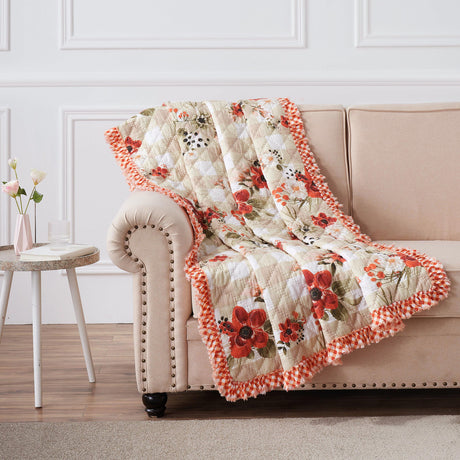 Floral Damask Rod-Pocket Homespun Insulated Curtain Panel, 42"W x 96"L