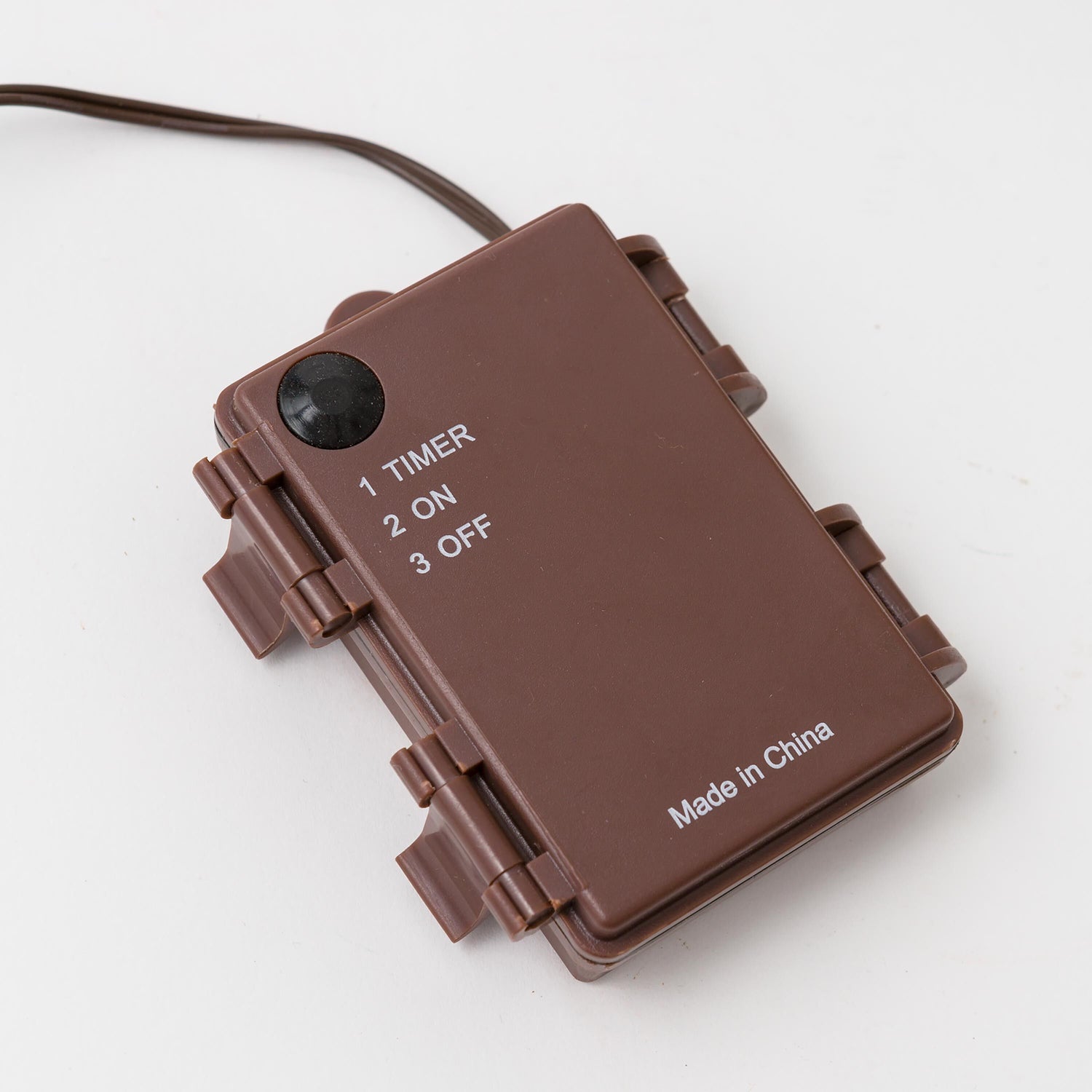 The LED lights are battery-operated on a timer for 6 hours on, 18 hours off. 18" lead wire from the battery pack. Takes 3 AA batteries, not included. Use indoors or outside. Imported.