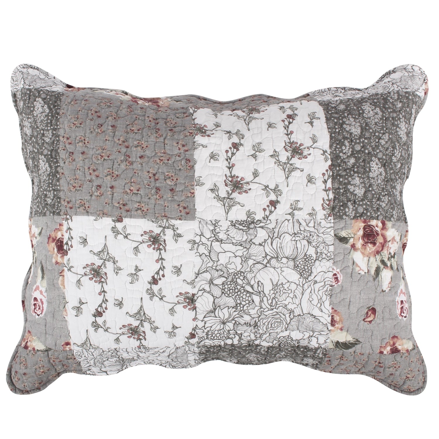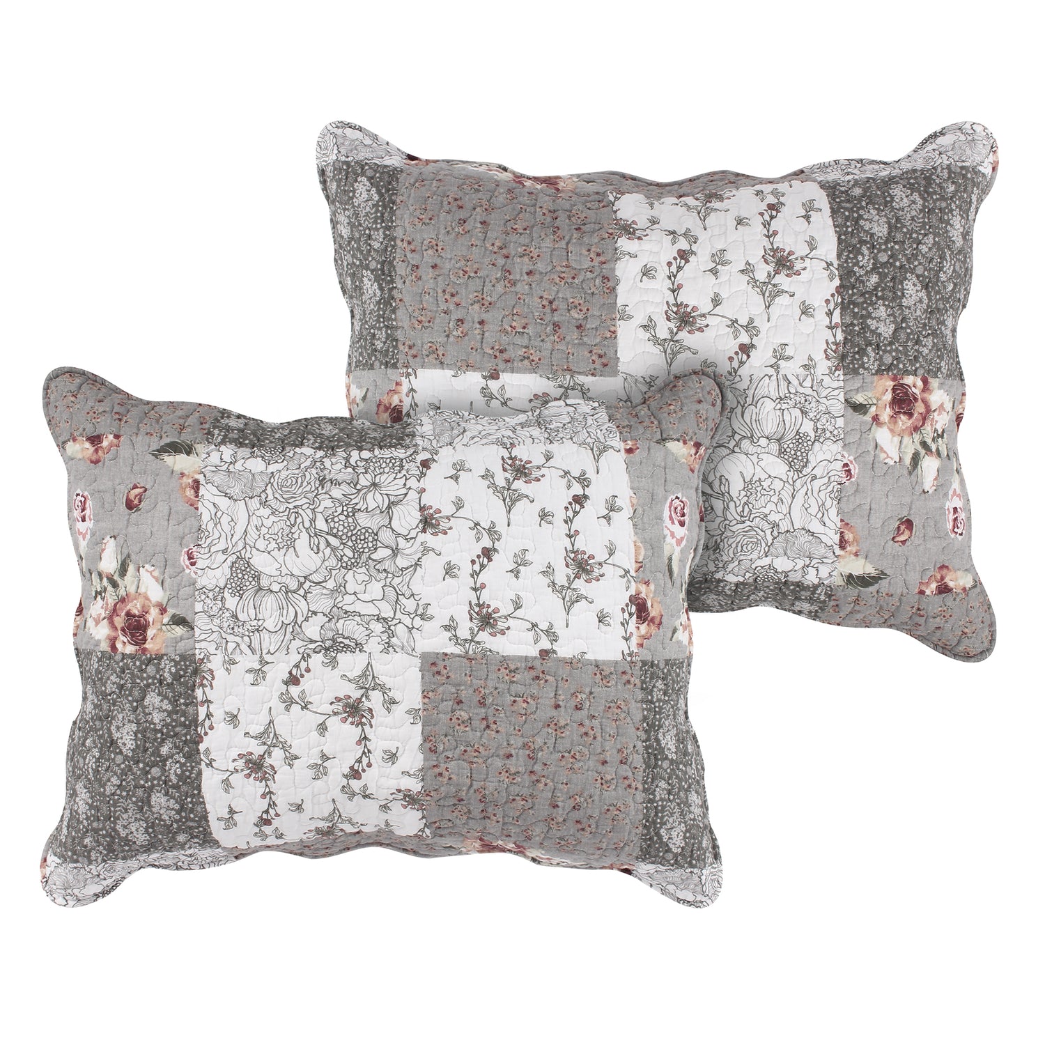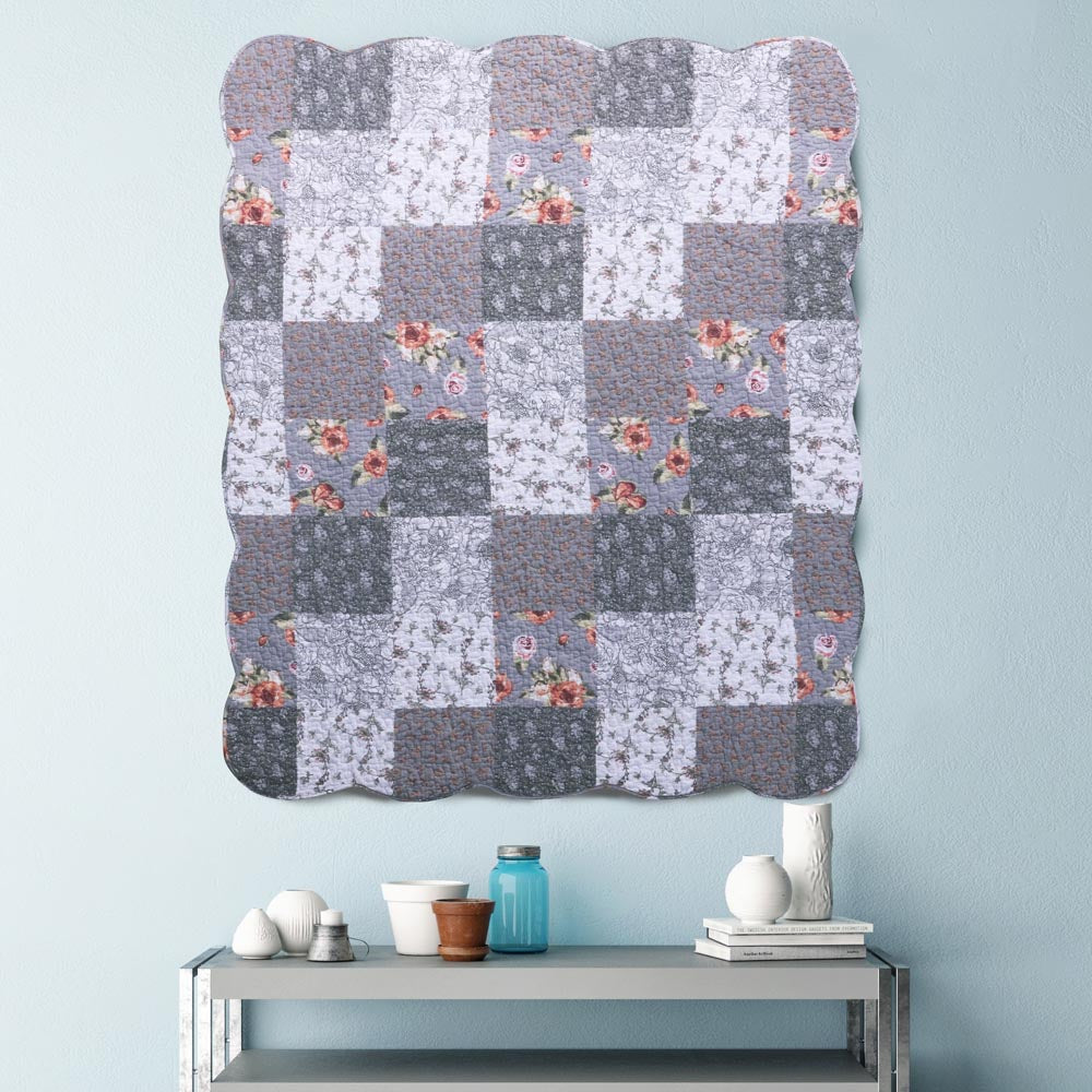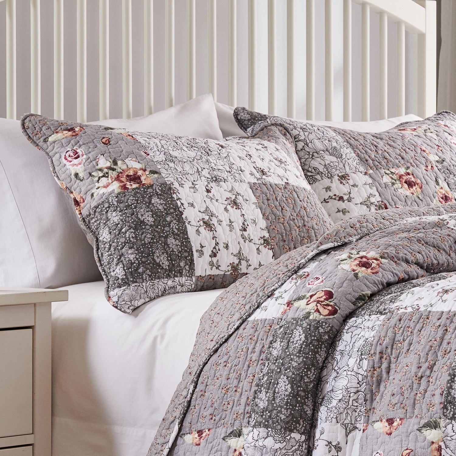 Spoil yourself with casual elegance! Our Giulia bedding set features fabulous floral and stencil prints on fashionable white and gray, for a look that is refined without being showy. Printed in a classic patchwork pattern to coordinate with a variety of color schemes, this bedspread and quilt reverse to an all-over floral print for two looks in one.