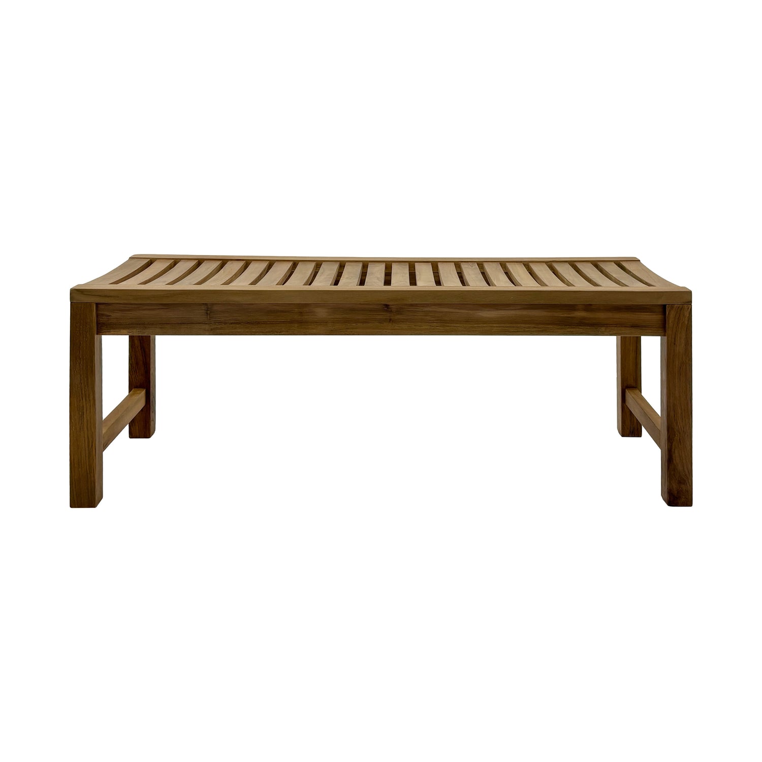 This solid teak bench is the perfect addition to your functional décor collection. Teak wood is easy to clean, sturdy, durable and comfortable. The supportive bench allows you to comfortably sit and take a moment of rest, lay your towels, shampoos, grooming supplies and just about everything in between (weight capacity is roughly 350lbs).
