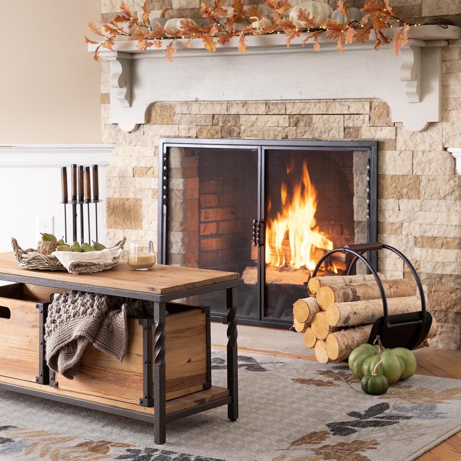 • Metal accents have rustic finish