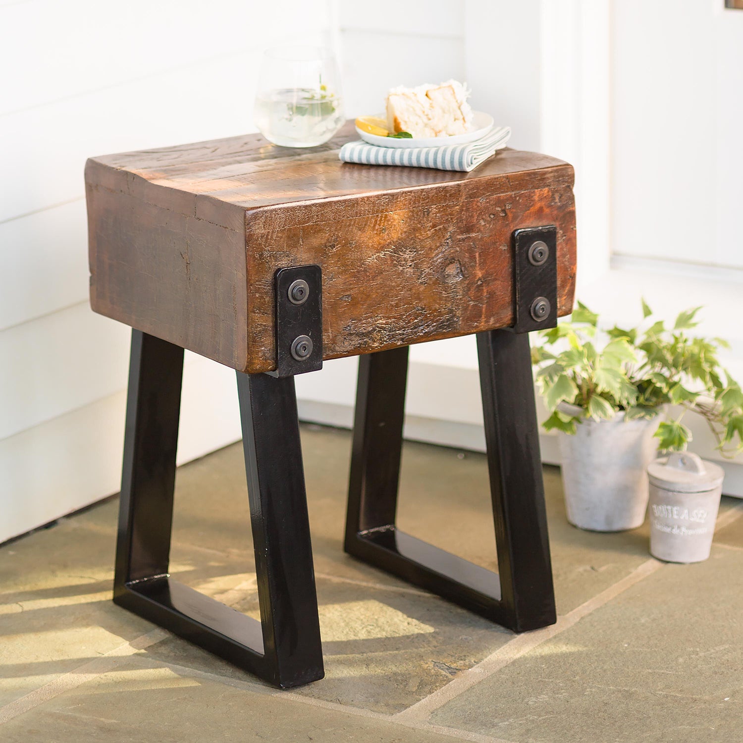 Our Richland Reclaimed Wood Stool/Side Table adds rustic style and high function to any space, indoors or outside.