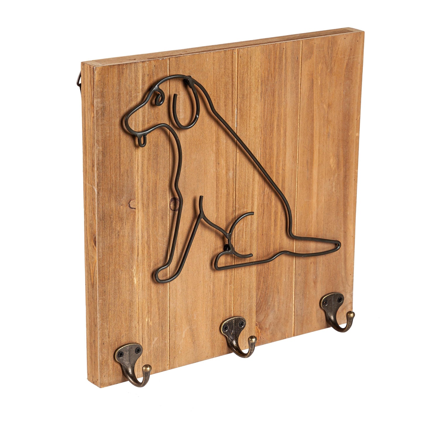 Keep your entryway organized with this metal and wood wall hook decor. With a cute outline of a dog and 3 hooks along the bottom, this wall piece is perfect for hanging leashes, collars, masks, and more. Made of wood and metal, two anchors allow for easy wall hanging and display.