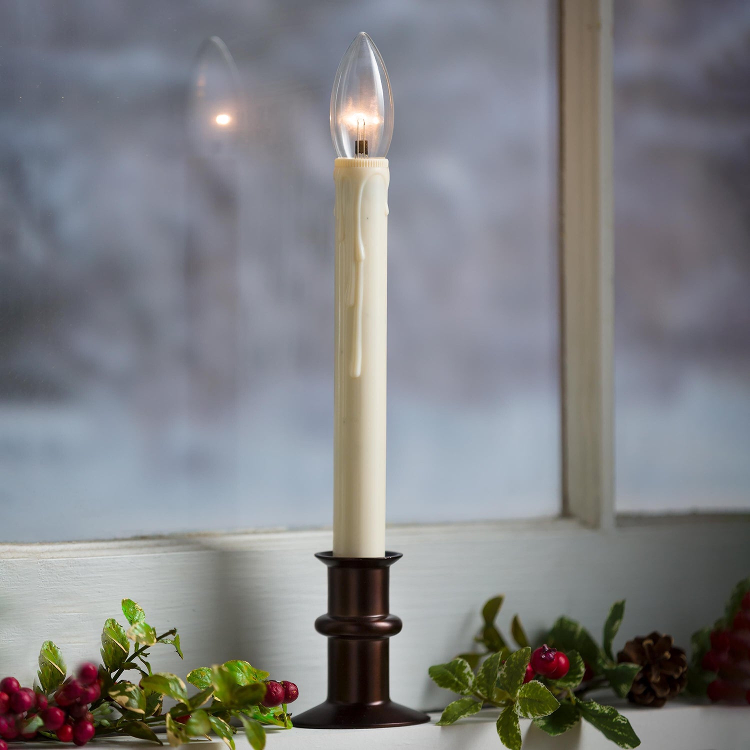 Each window candle comes with a dual-intensity, remote-enabled LED bulb that directs brighter light outside with a soft glow inside.