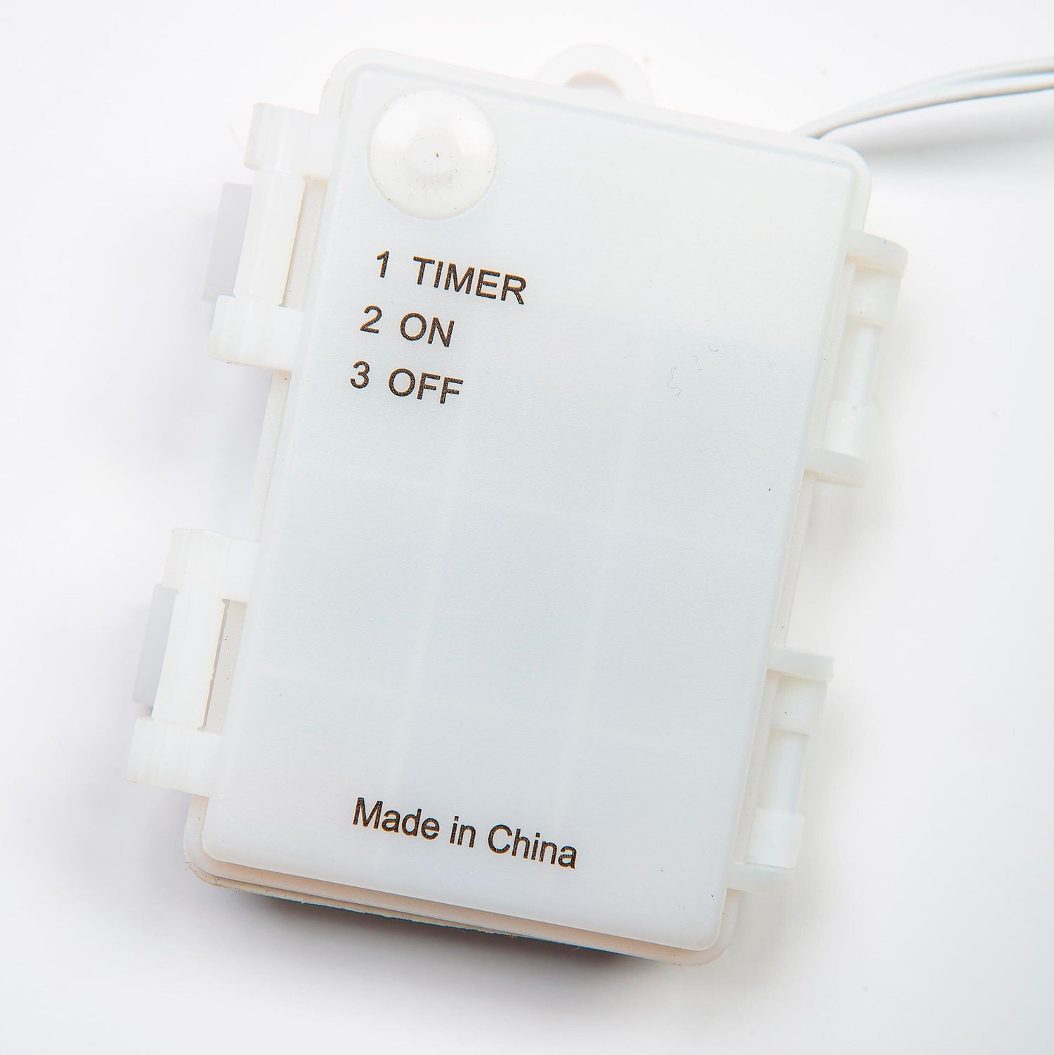 Battery-operated with on/off/auto-timer. Timer stays on for 6 hours, off for 18. 16'L cord. Takes 3 AA batteries, not included. Imported.
