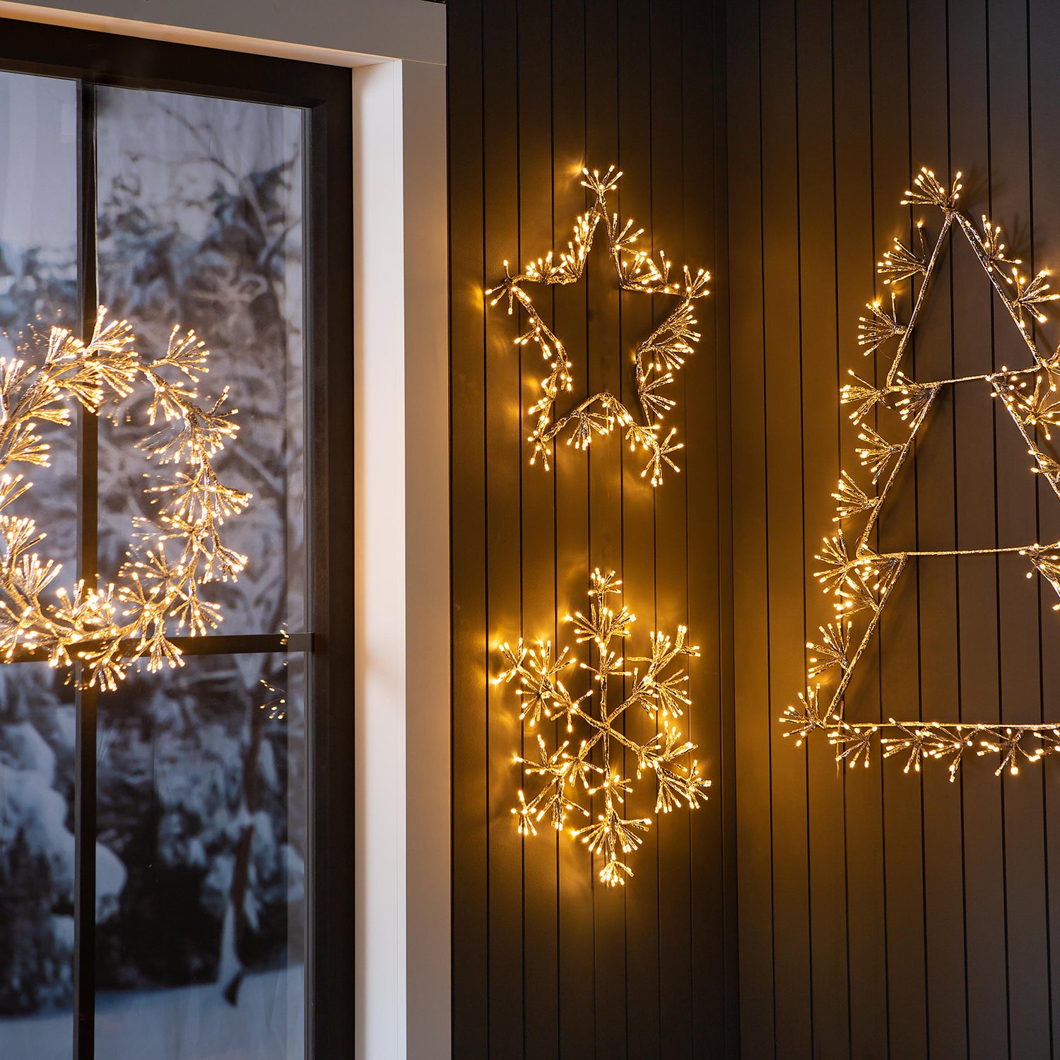- Snowflake has 192 warm white LED micro lights on a silvery background