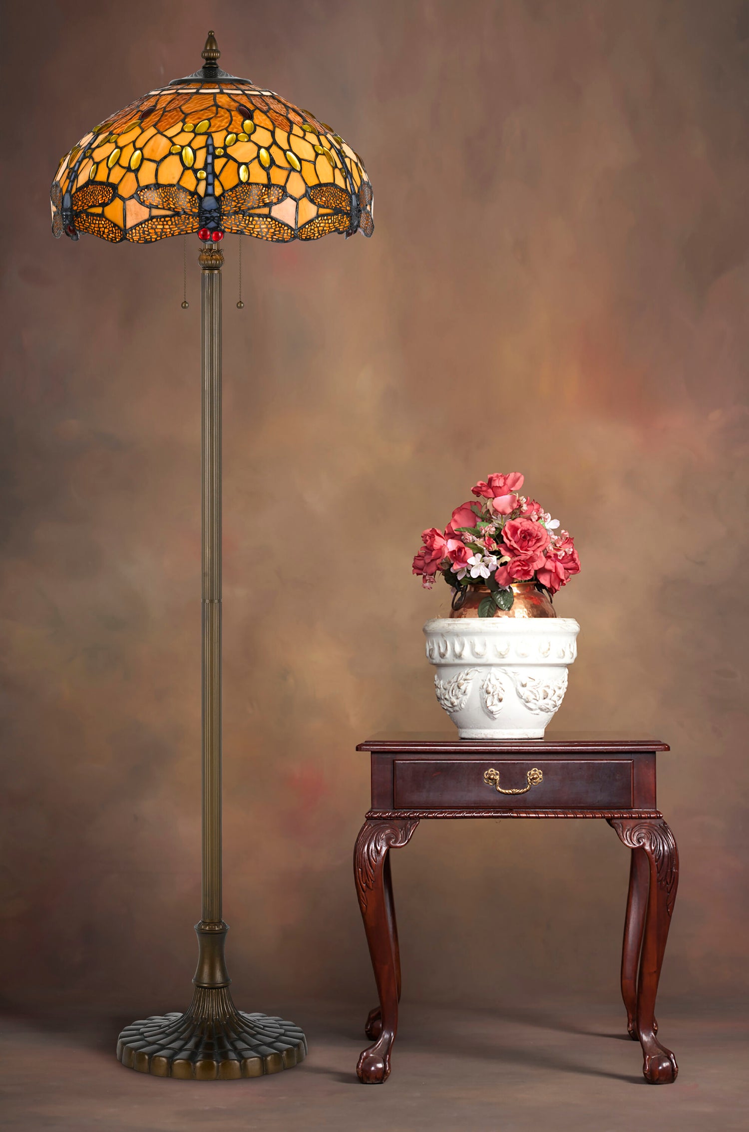 Tiffany Amber Dragonfly Floor Lamp with Zinc Cast Base