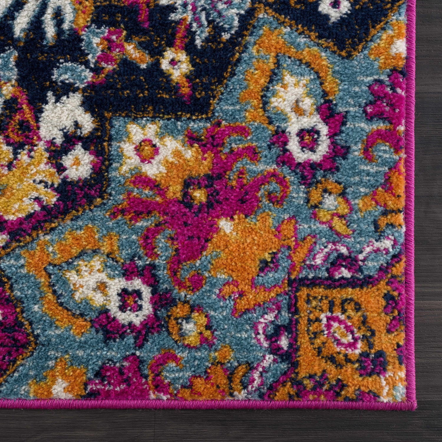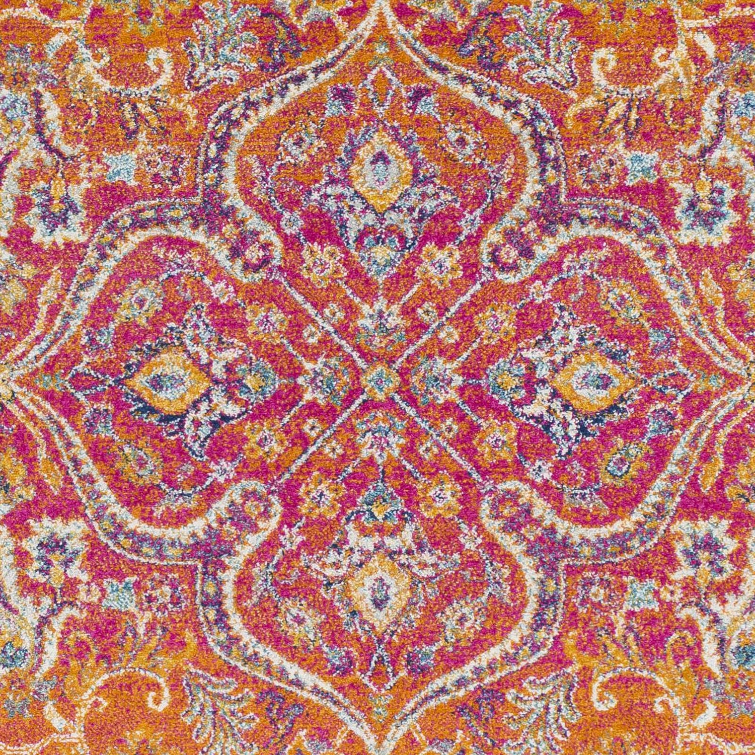 This bohemian rug features unique color combinations coming together to create a work of art for your living space. The vibrant burnt orange, teal, burgundy and mustard warp around each other in a medallion design that is guaranteed to brighten up any room. Its soft fabric will make this a cozy addition to your home as well! This exciting design will perfectly match with any sorts of bohemian or modern décor styles you might have.