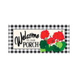 Inside the plaid border is a grouping of beautiful red geraniums and a welcoming message, which makes it the perfect seasonal accent for your porch, or you can display it year-round for long-lasting enjoyment!