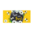- Whimsical multi-function floor mat featuring bee and daisy accents on a honeycomb background