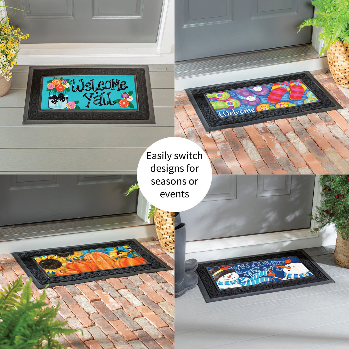 These durable and vibrant doormats make seasonal decorating a breeze thanks to the included base tray. Sassafras mats are constructed of durable rubber for a non-slip grip and extra protection against the elements.