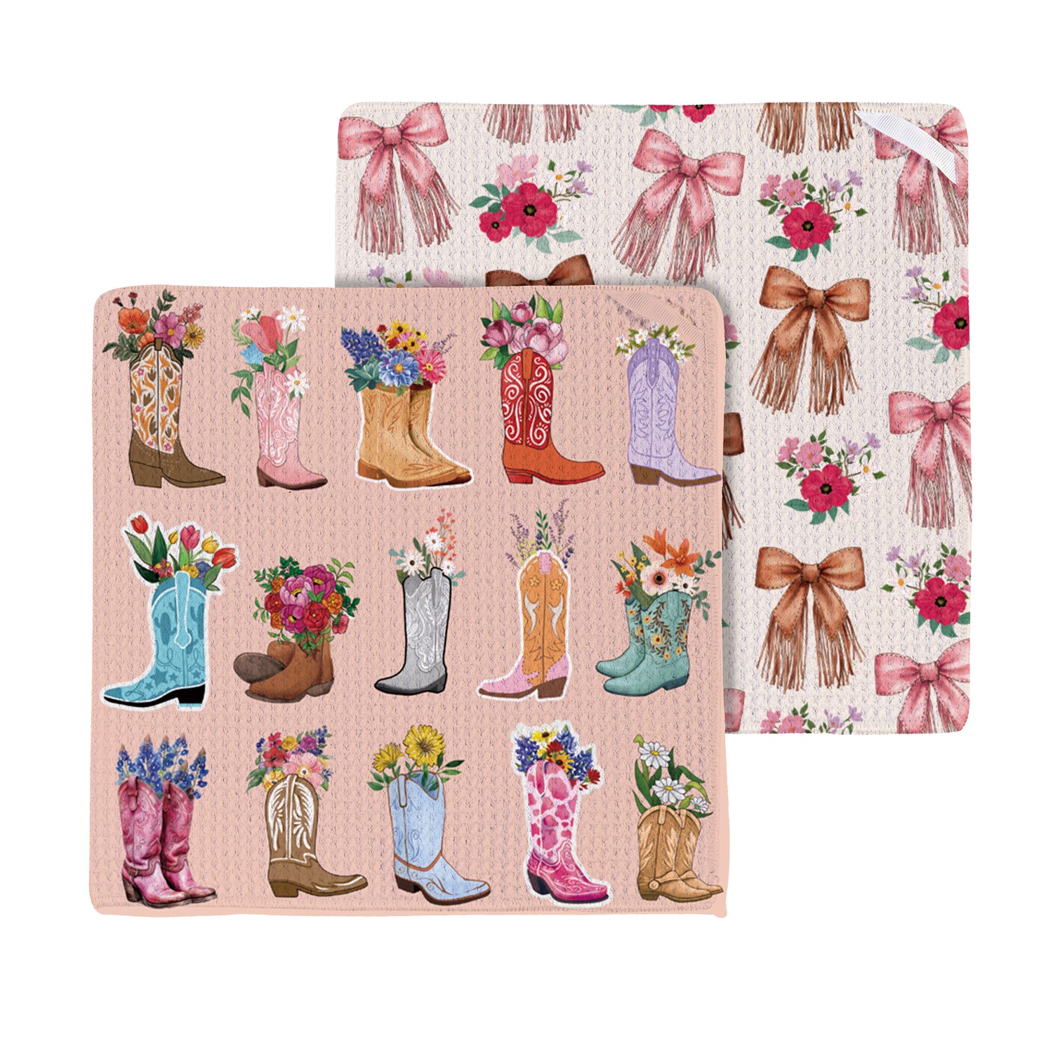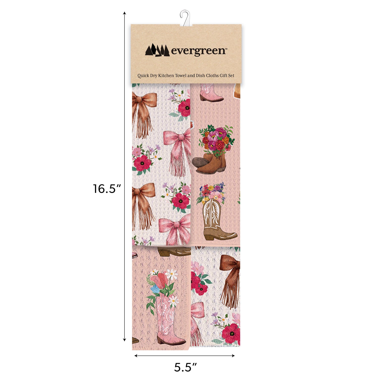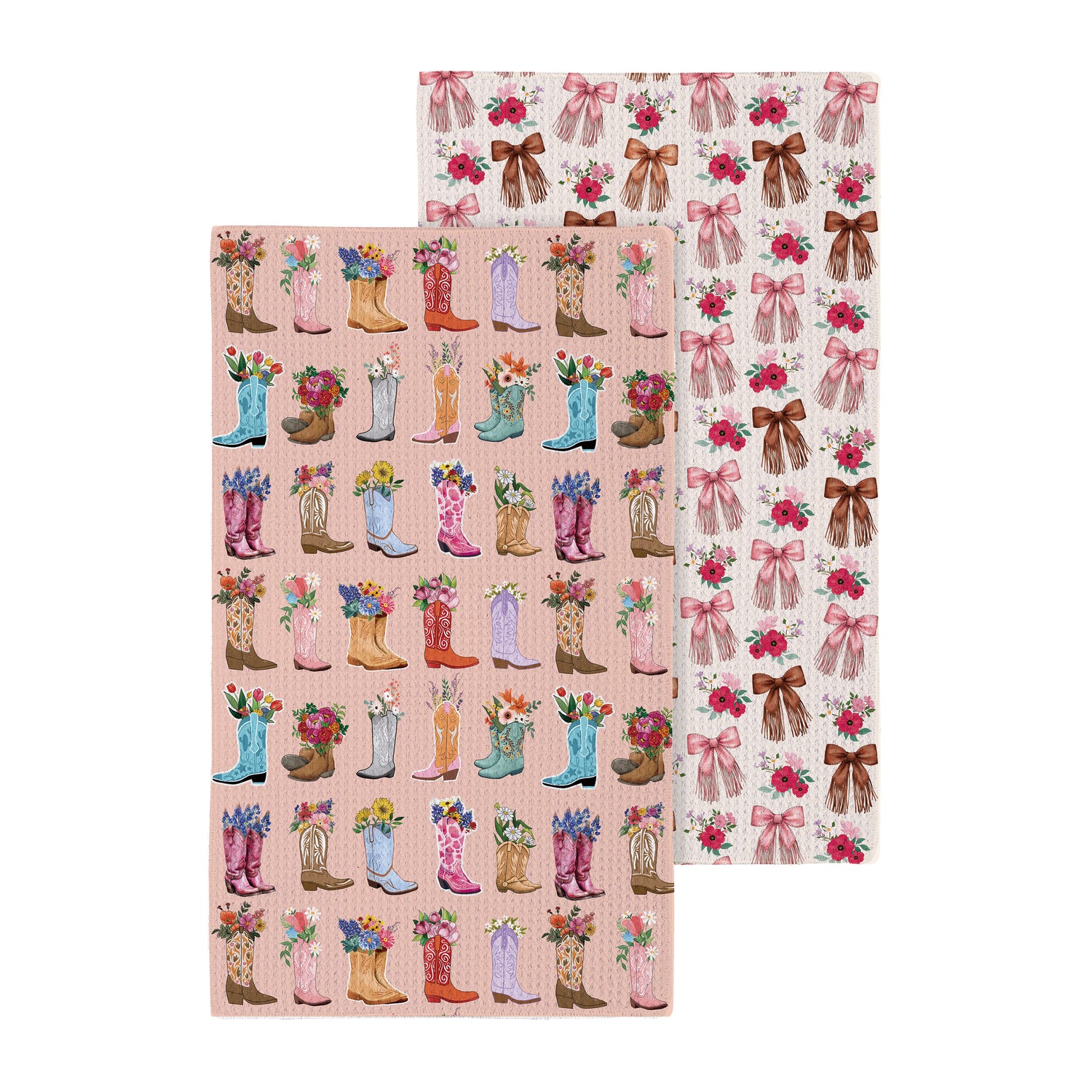 Boots & Bows Western Cowboy Boots Quick Dry Gift Set, 1pc Kitchen Towel and 2pc Dish Cloth