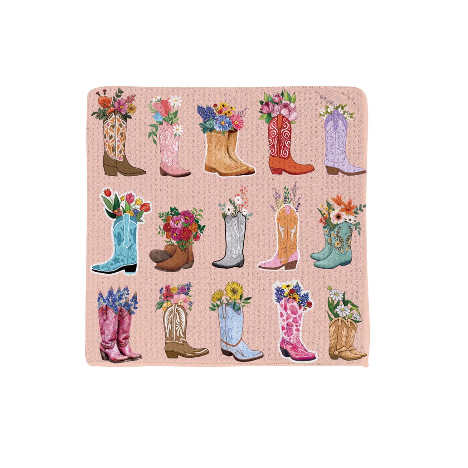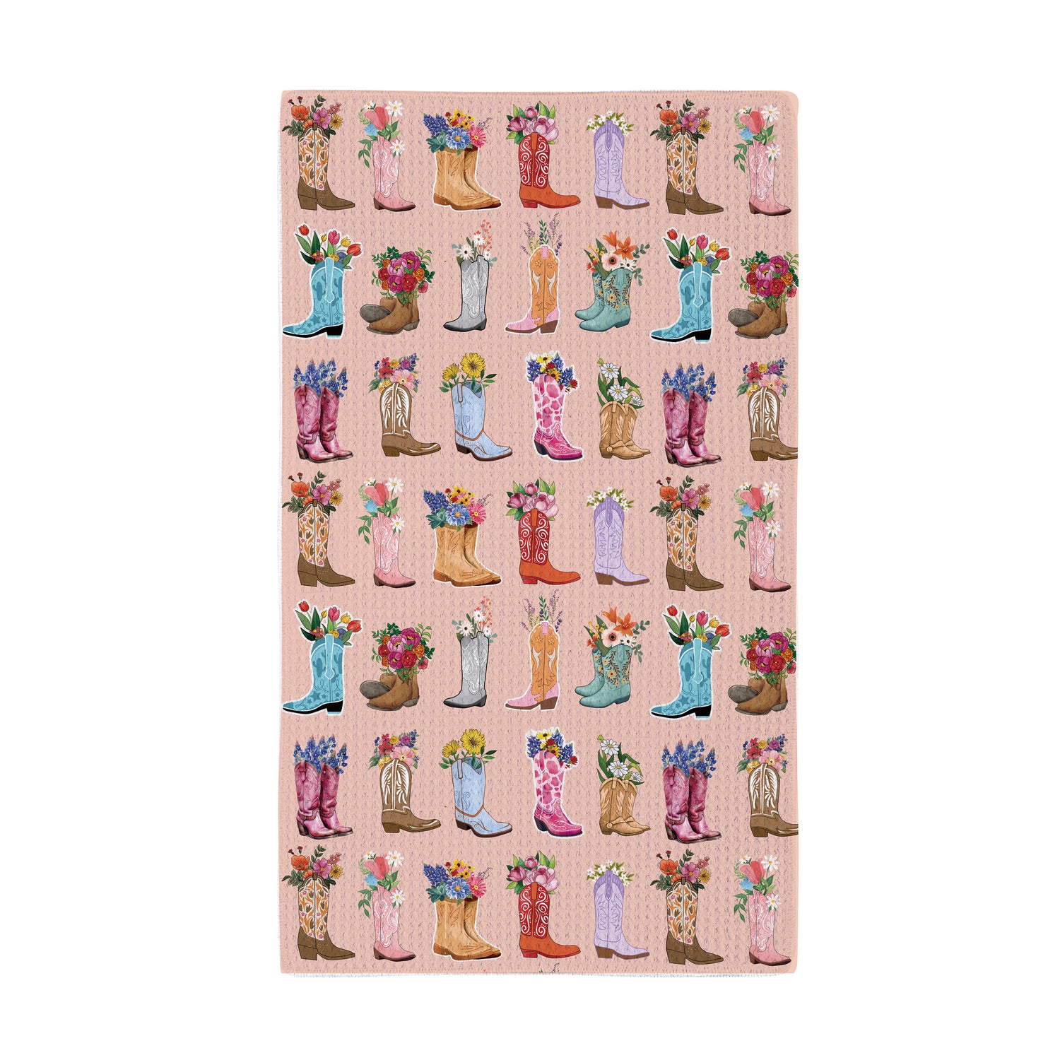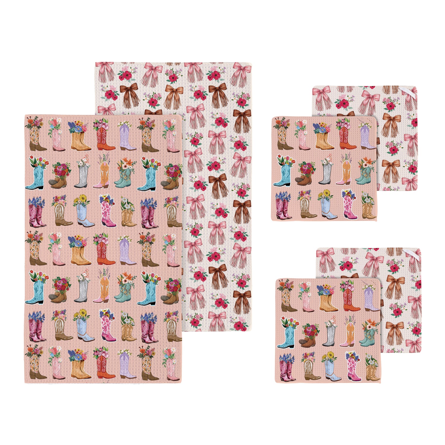 Boots & Bows Western Cowboy Boots Quick Dry Gift Set, 1pc Kitchen Towel and 2pc Dish Cloth