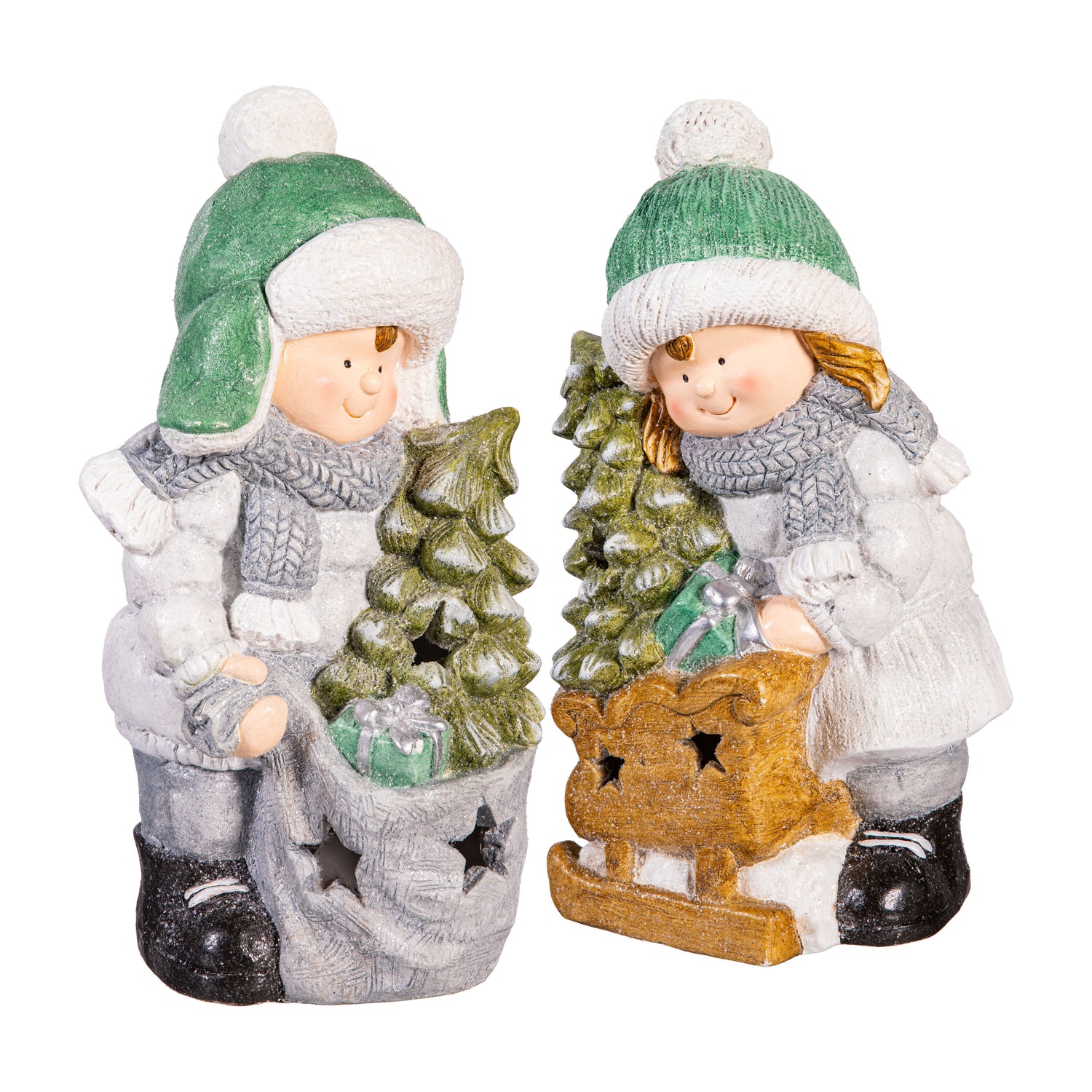 Welcome the holioday season with these adorable children! Our set of 2 Christmas Kids Solar Garden Statues will bring some merriment to your porch, tabletop, hearth and more. They are perfect for greeting guests inside your door on on your front porch.