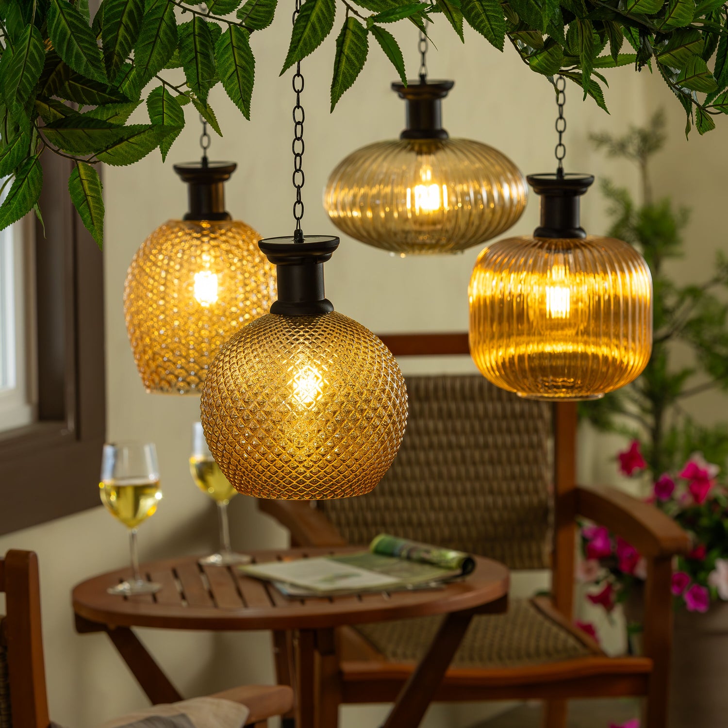 Solar Pebbled Glass Hanging Lantern