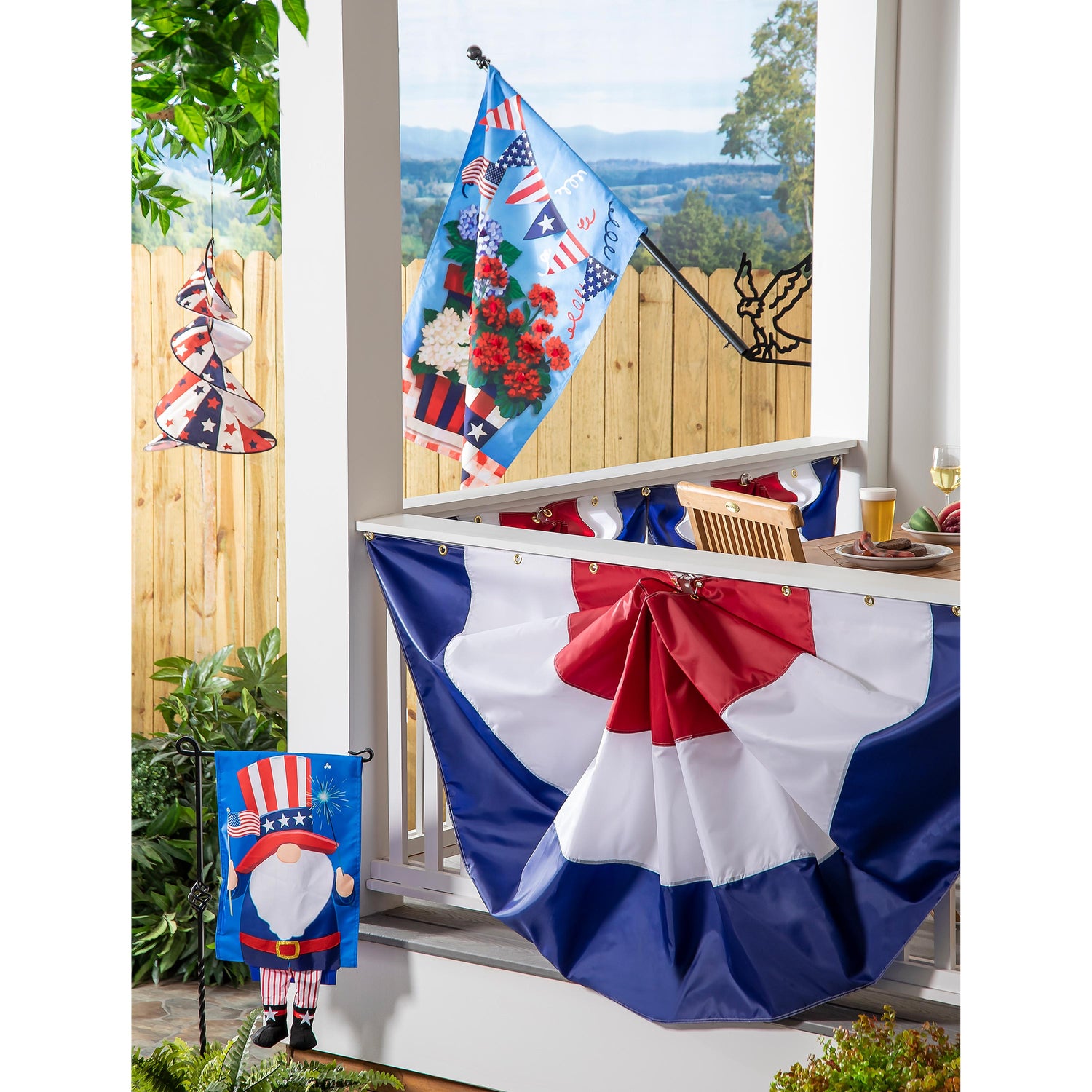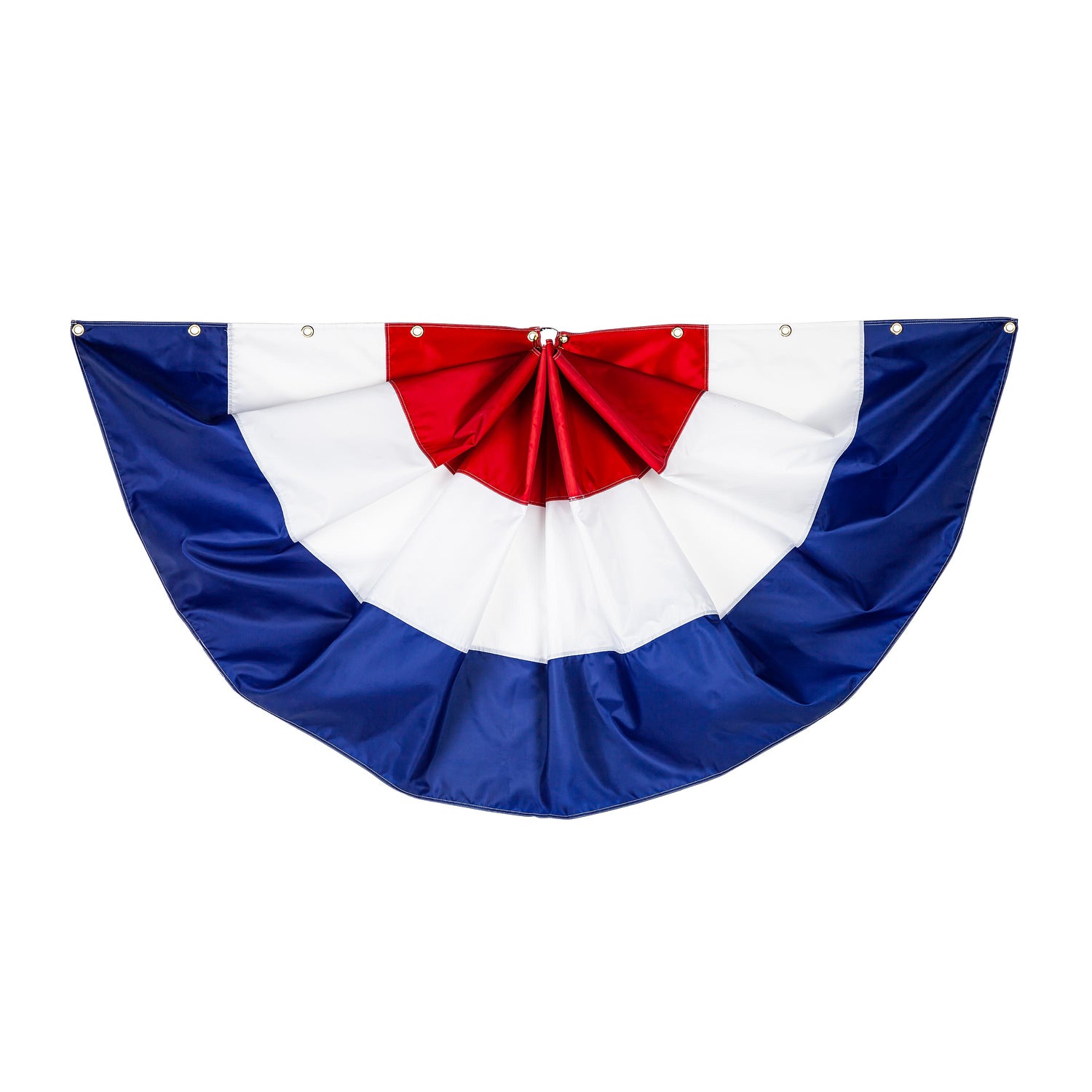 - Classic red, white, and blue pleated bunting design